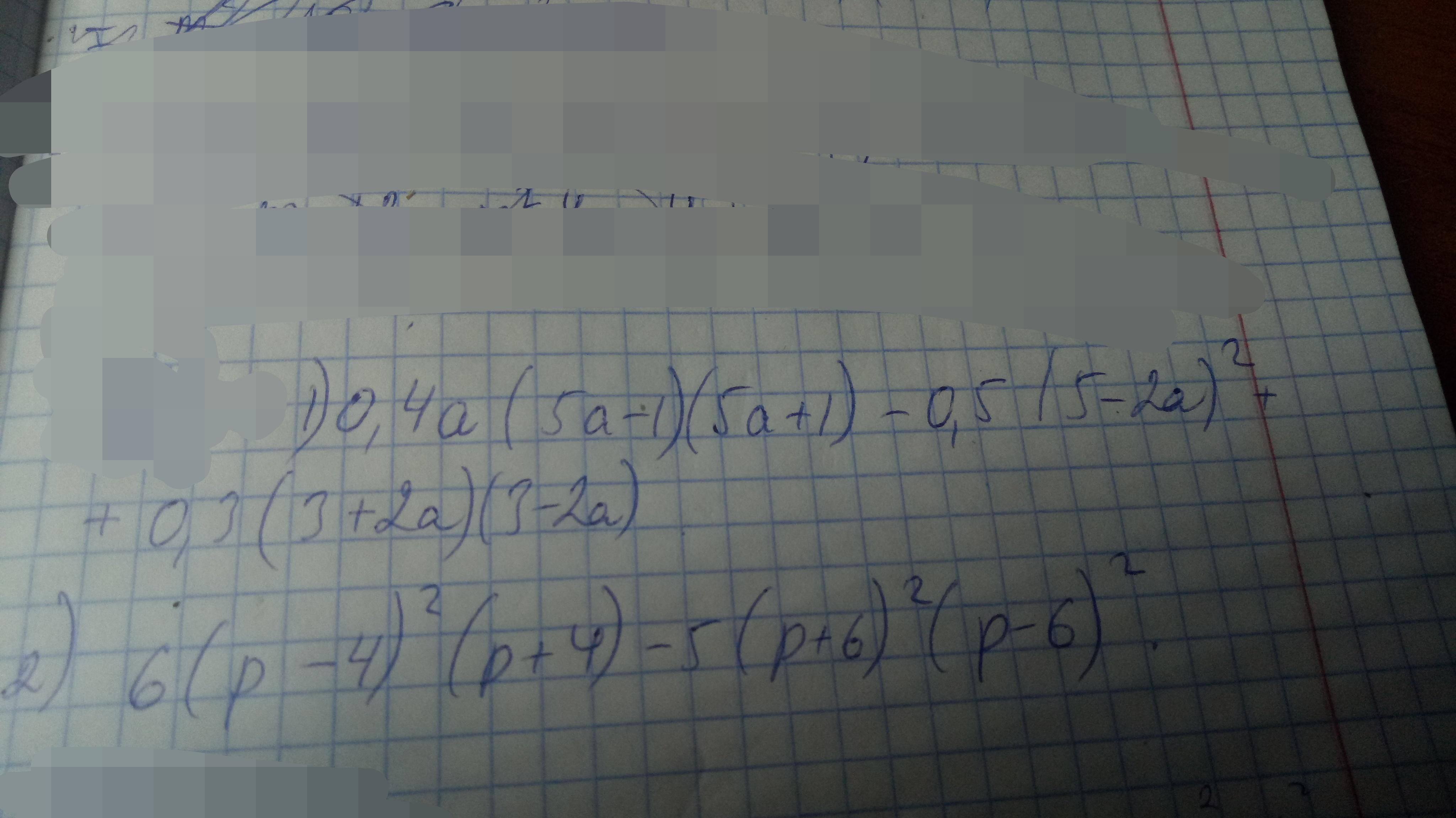 2). 6(p²-16)(p-4)-5(p²-36)²=6(p³-4p²-16p+64)-5(p^4 -72p²+1296)=6p³-24p²-96p+384-5p^4 +360p²-6480=-5p^4 +6p³+336p²-96p-6096