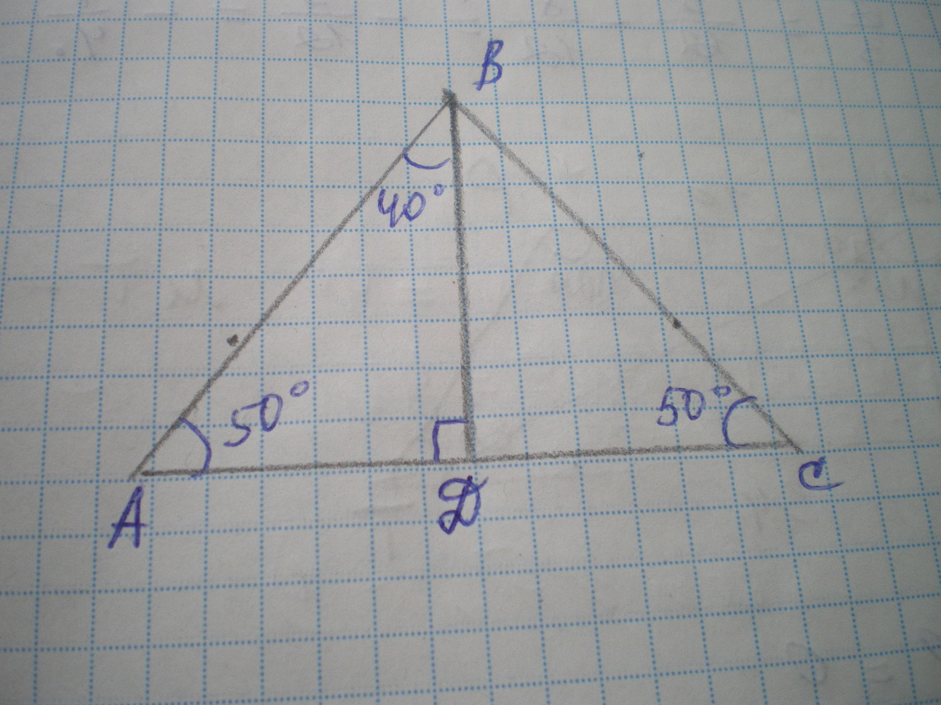 Отже, ∠А=50°, ∠АВD=40°, ∡ВDА=90°