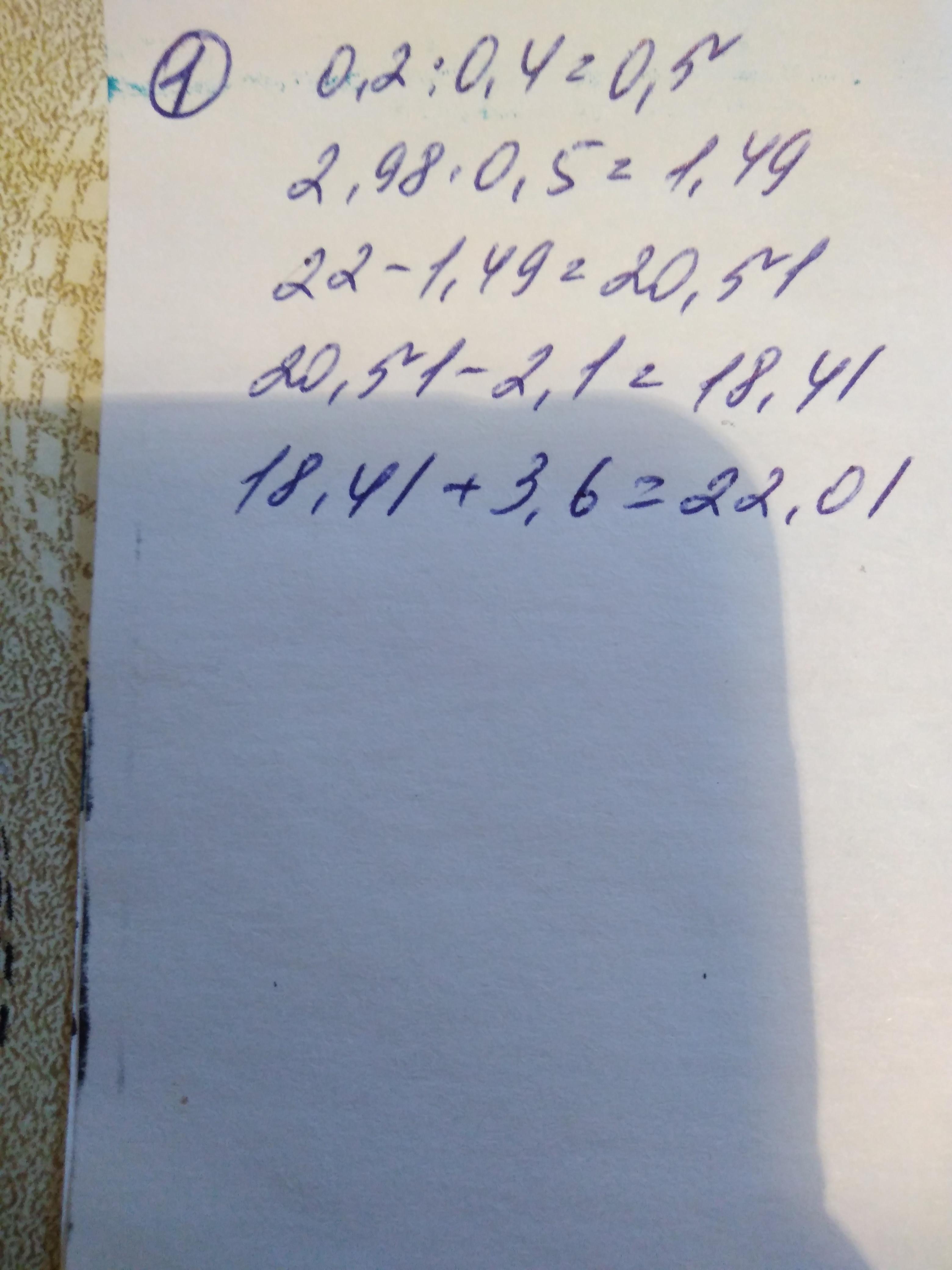 22-2.98•0.2:0.4-2.1+3.6 = 22-1.49-2.1+3.6 = 22.01
