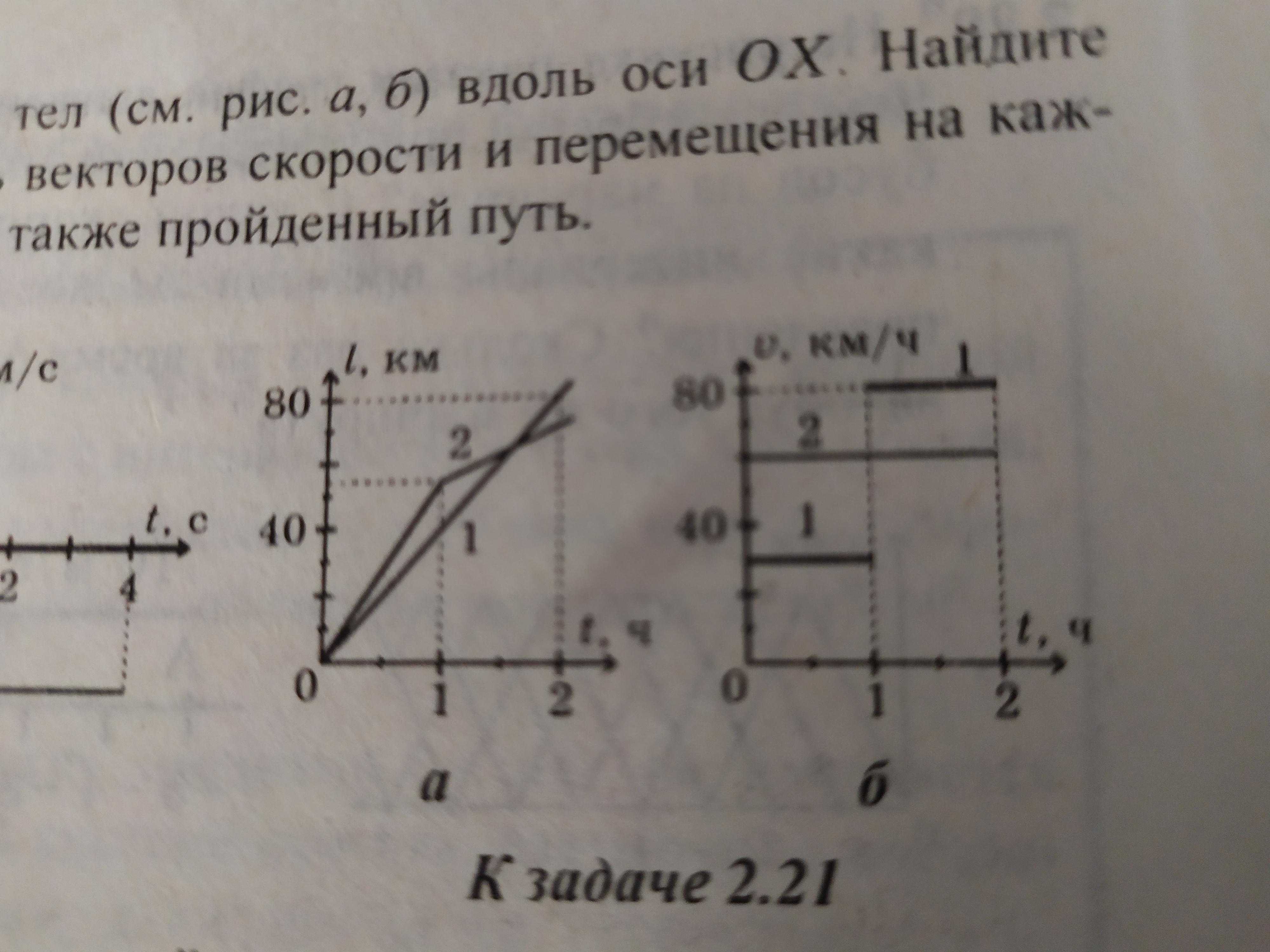 Могут ли двигаться по одной железнодорожной колее в одну сторону два поезда, графики движения которых приведены на рис.а?на рис.б? В начальный момент первый поезд опережал второй на 20 км?