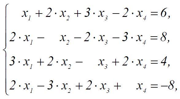 4) Наконец, подставляя значения x2, x3 и x4 в первое уравнение любой системы, находим x1=1