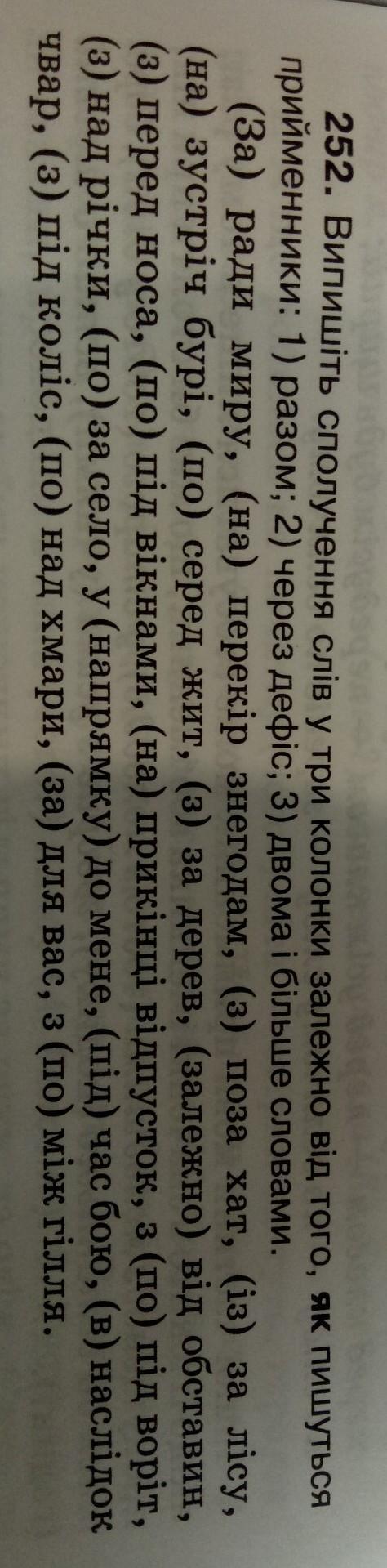 1) За ради миру, наперекір знегодам, назустріч бурі, посеред жит, з-над річки, відпусток, поза село, внаслідок, понад хмарами, задля вас, з-попід воріт.