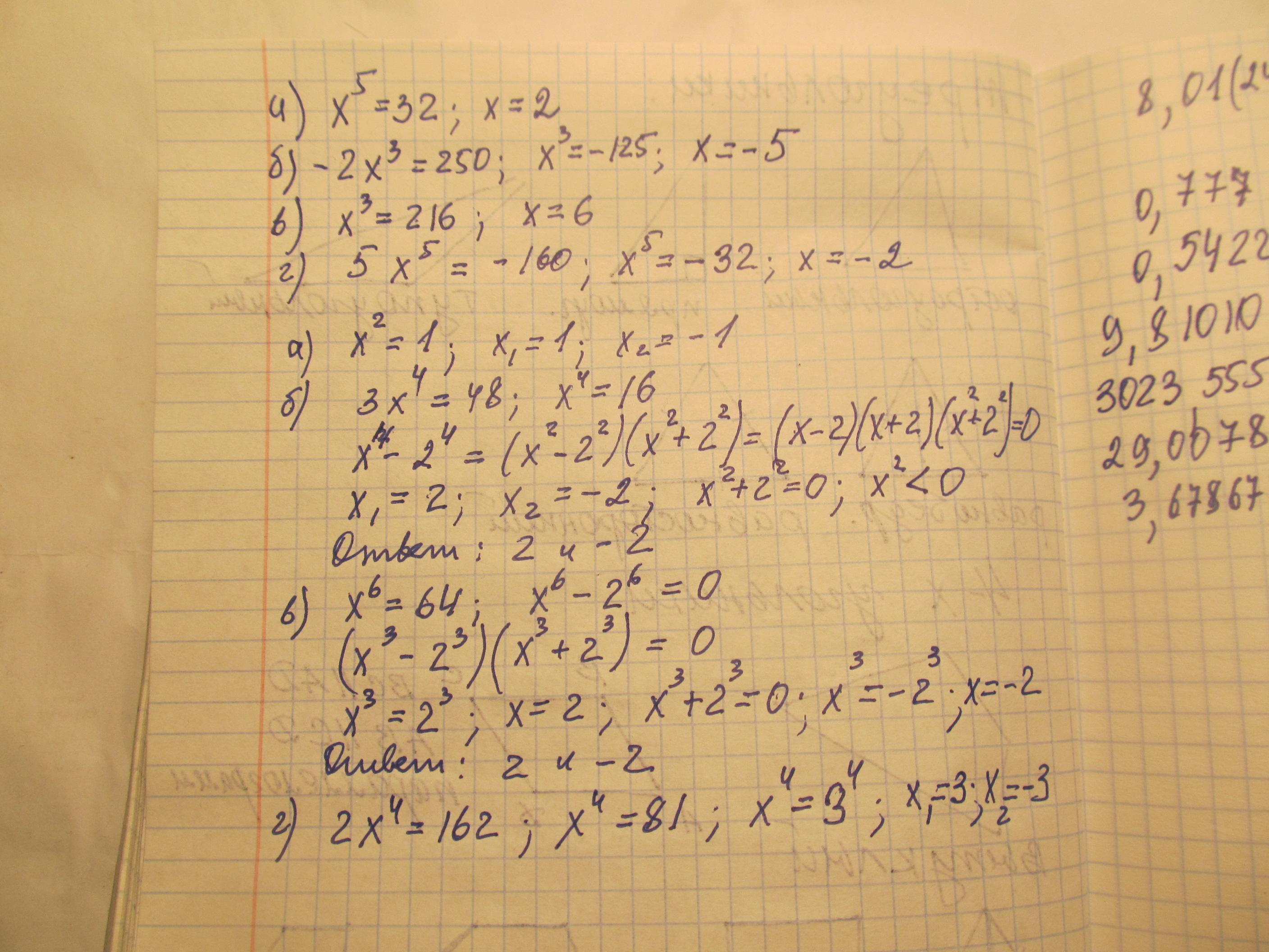 г) 2х⁴ = 162 х⁴ = 81 х₁ = 3 х₂ = -3