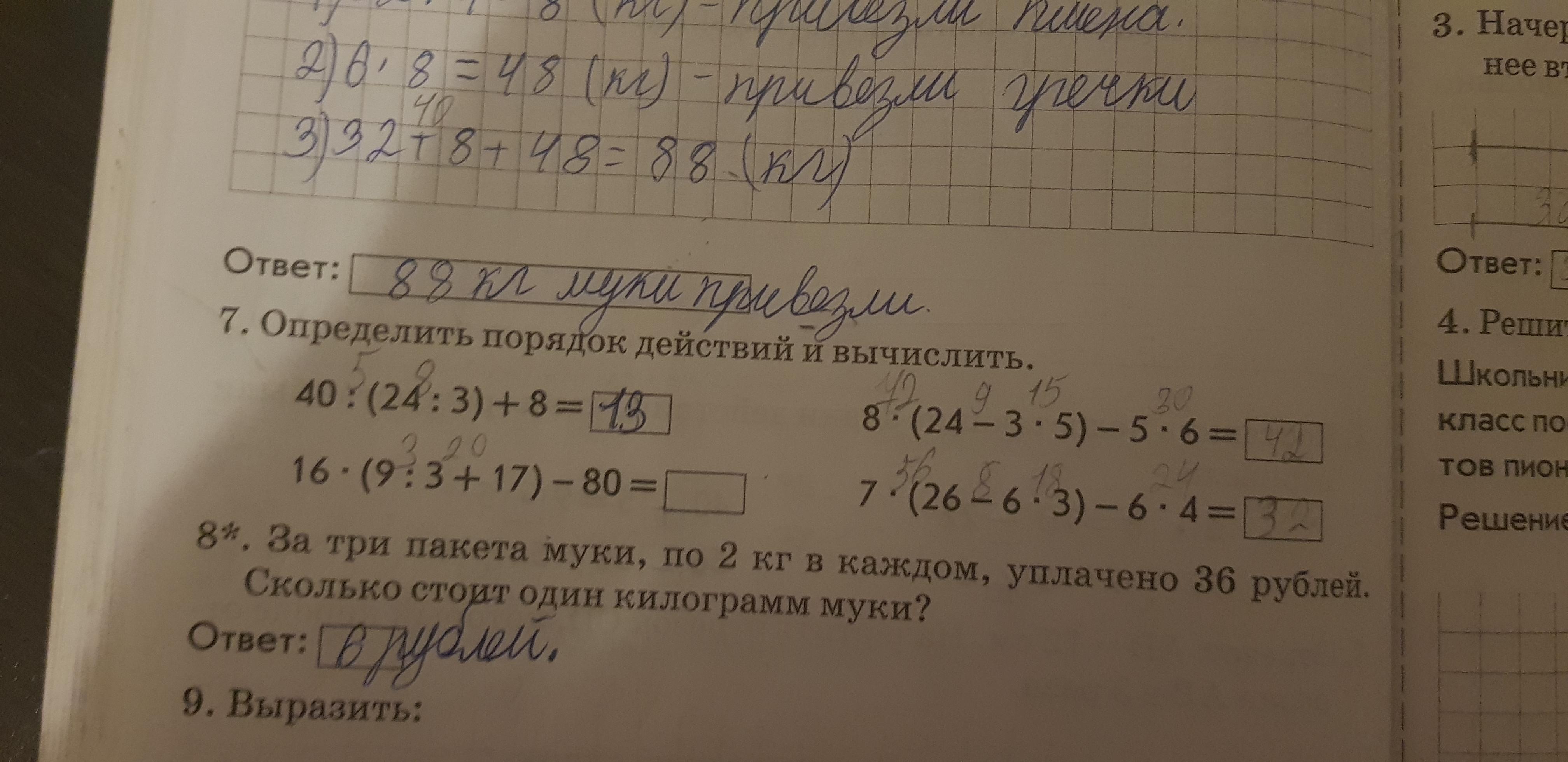 Первое действие: 24 : 3 = 8