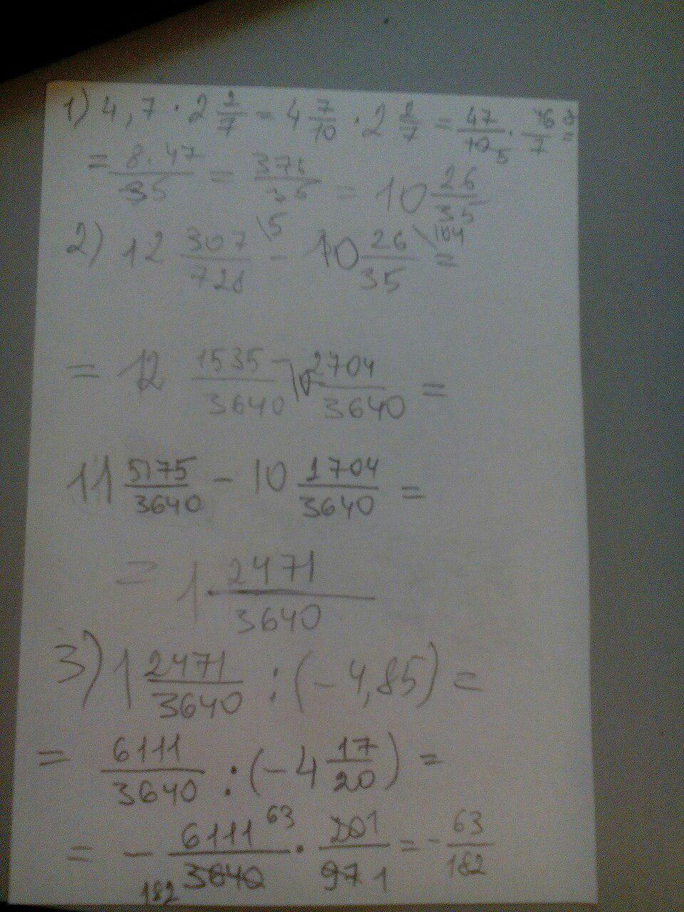 Во втором действии Вы в самом конце немного ошиблись... должно выйти 1 целая 2471/3640