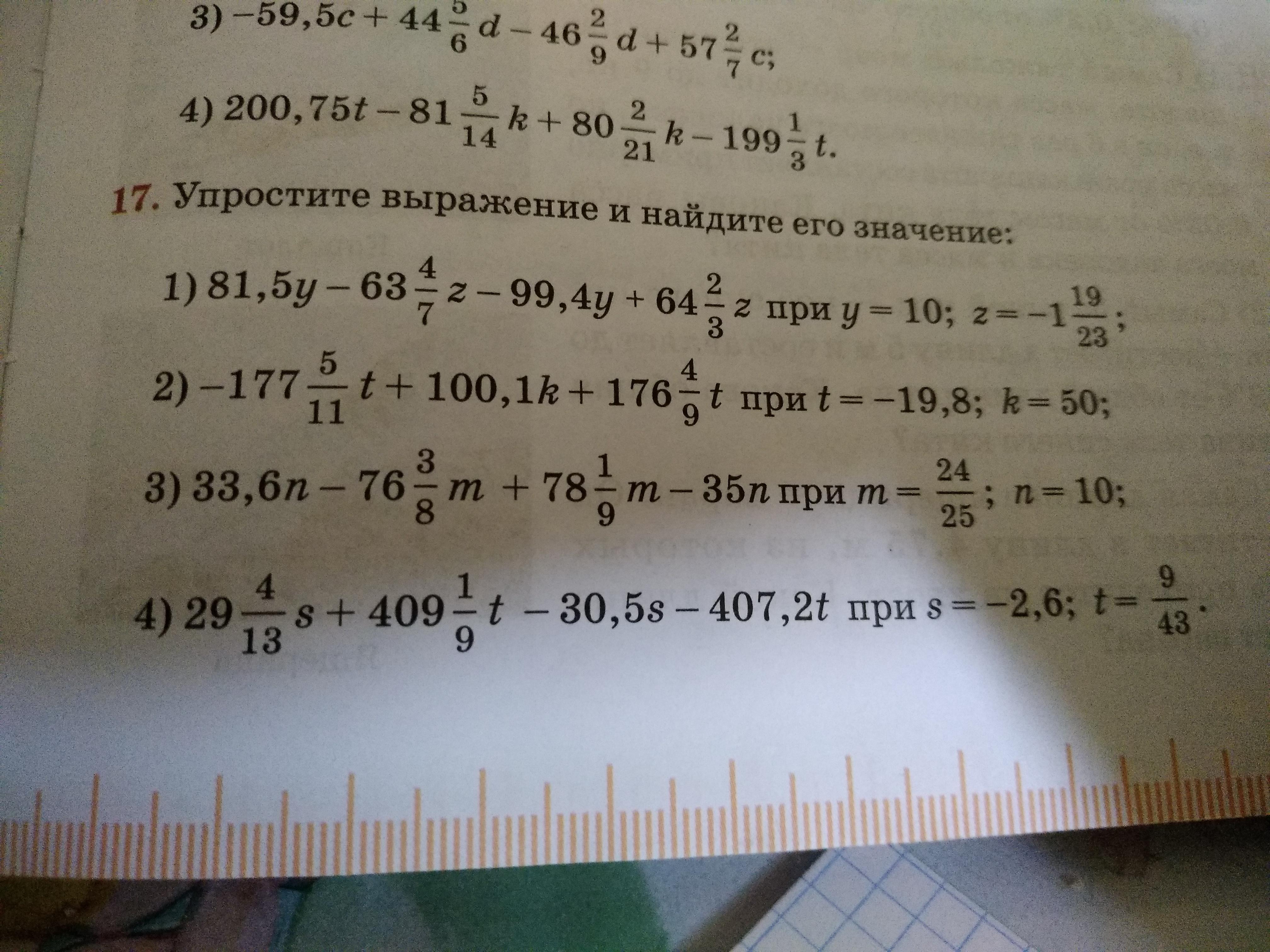 1)81,5у-63цел4/7z-99.4y+64цел2/3z=(81.5y-99.4y)+(64цел2/3z-63цел4/7)=-18.1y+1цел2/21z=-181-2=-183