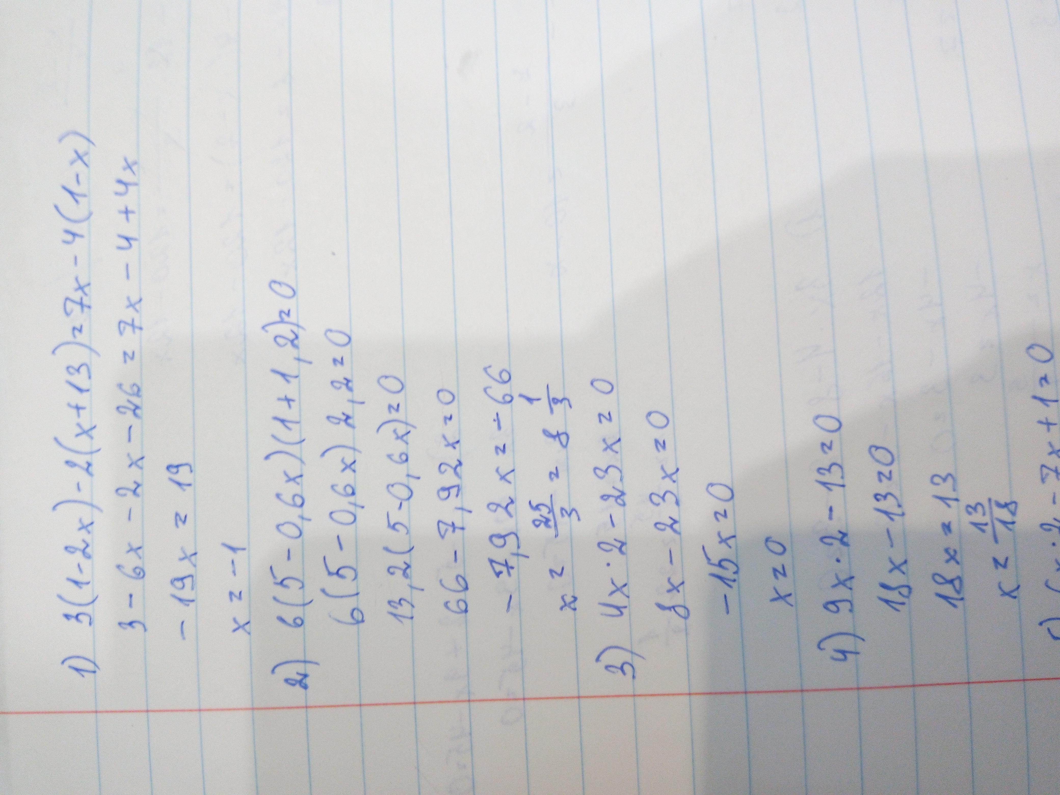 1. 3(1-2х)-2(х+13)=7х-4(1-х)