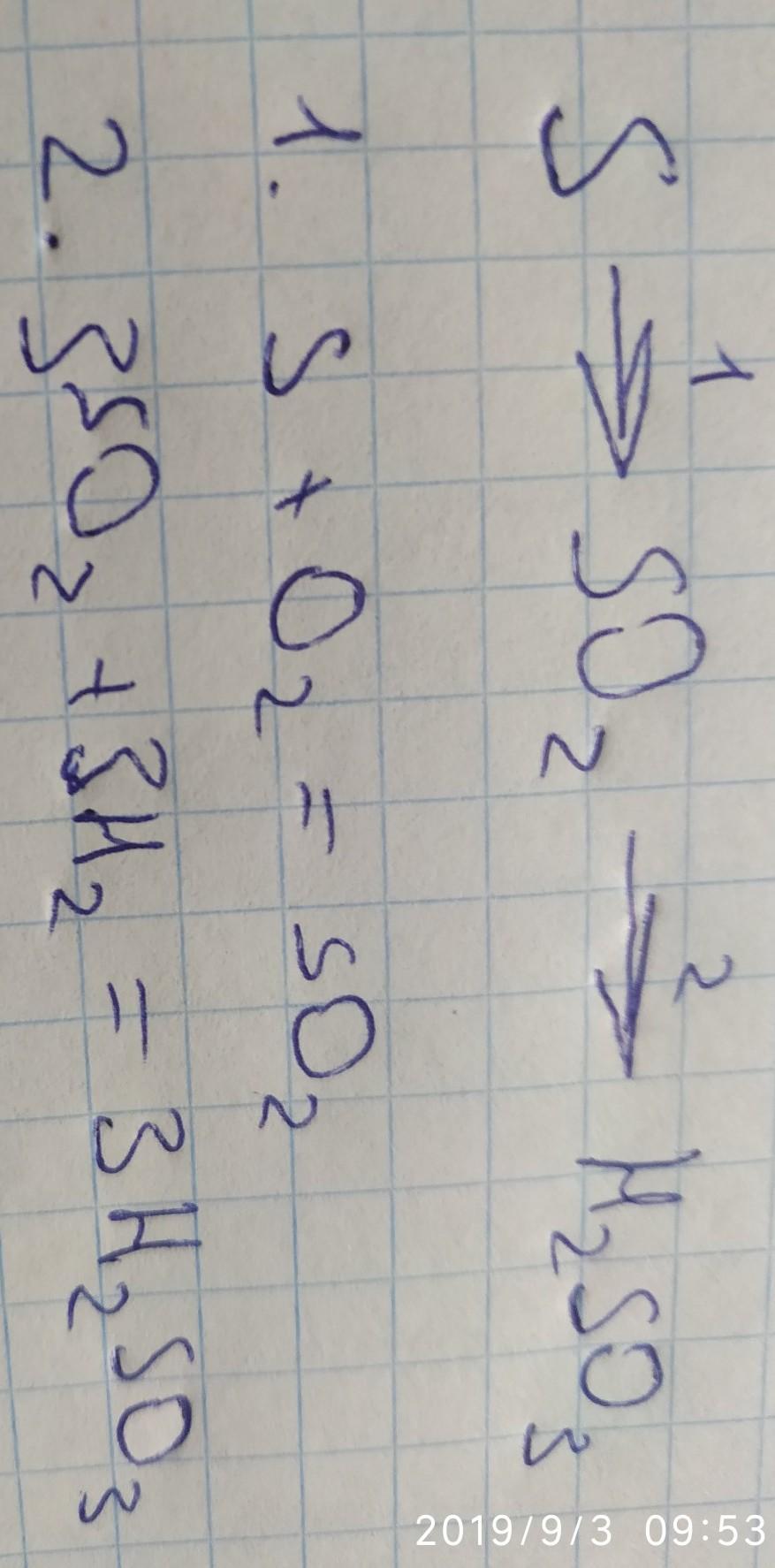 S→SO₂→H₂SO₃