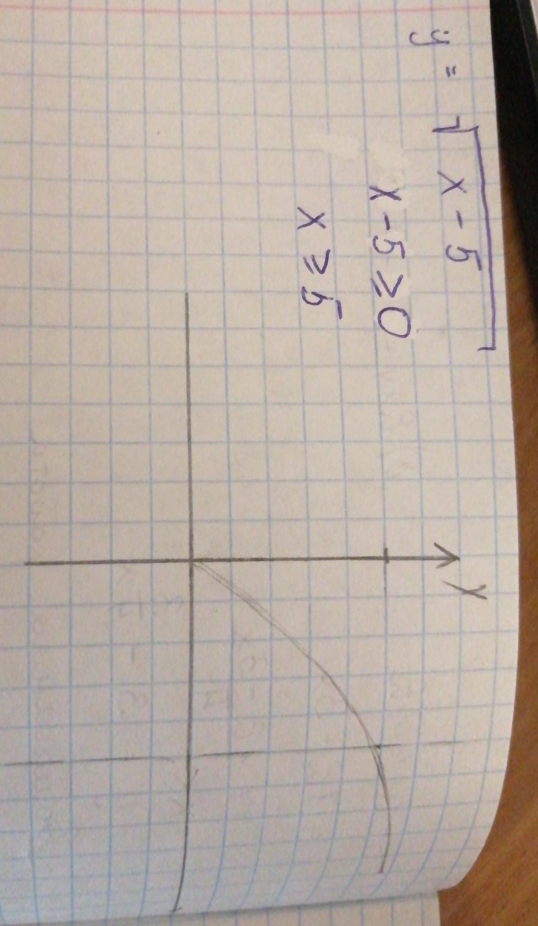 Ответ:ты сам/а написал/а что икс больше или равен 5.Значит ты должен/а нарисовать график лишь после икс равен 5(5 входит так как икс может быть равен 5ти)