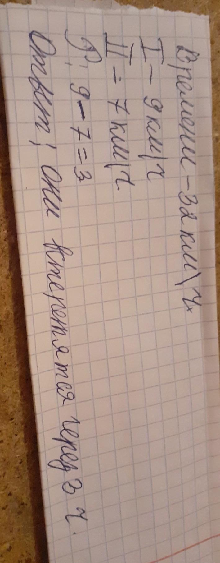 Два велосипедиста едут по шоссе навстречу к друг другу. Расстояние между ними в данный момент времени 32 км/ч. Скорость 1 из них 9 км/ч, другово 7 км/ч. Через сколько часов они встретятся? Решение нужно