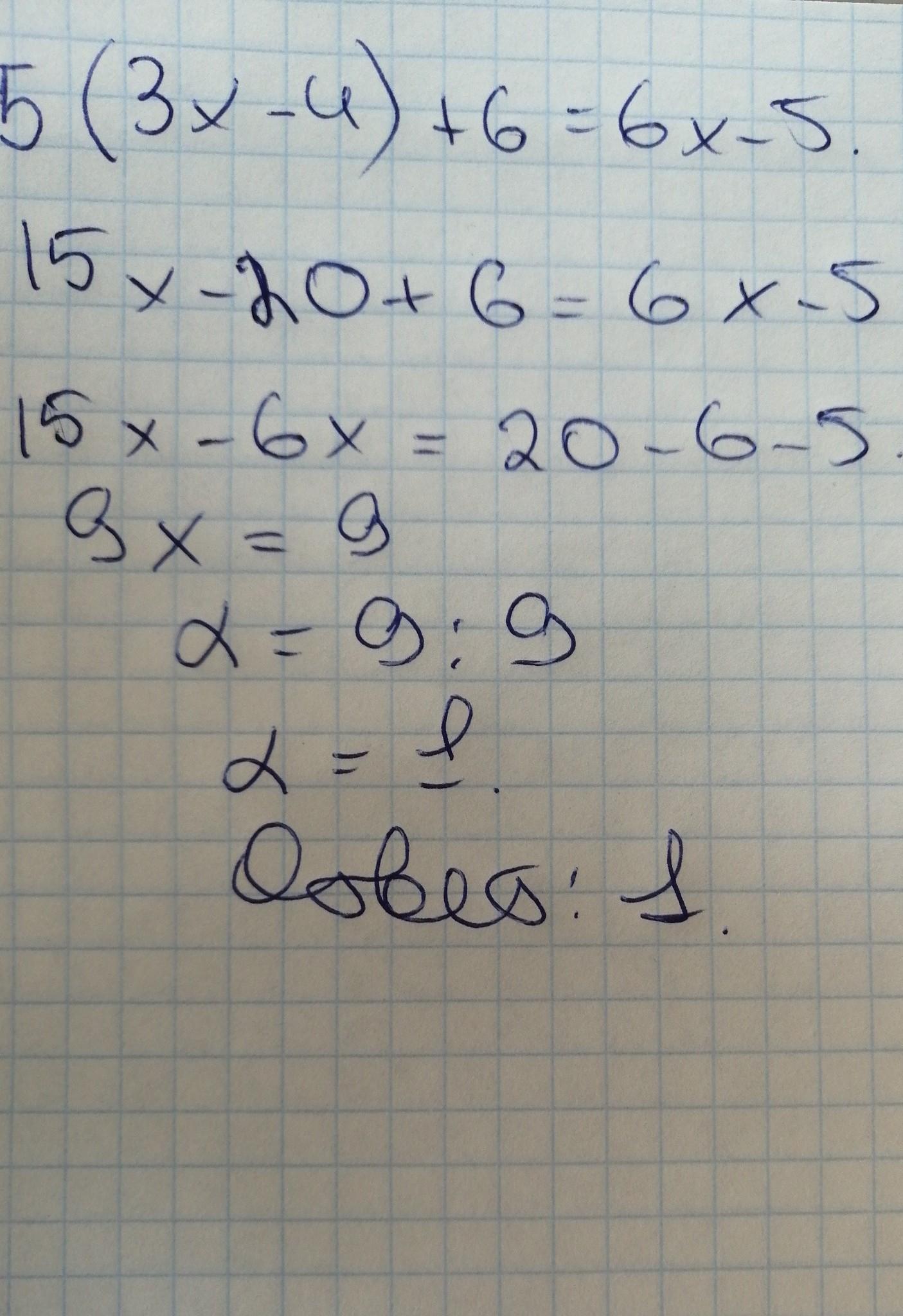 5×(3х - 4)+6=6х - 5 помогите решить это уравнение пожалуйста !!! СРОЧНО ОЧЕНЬ НУЖНО!!!! ПОЖАЛУЙСТА