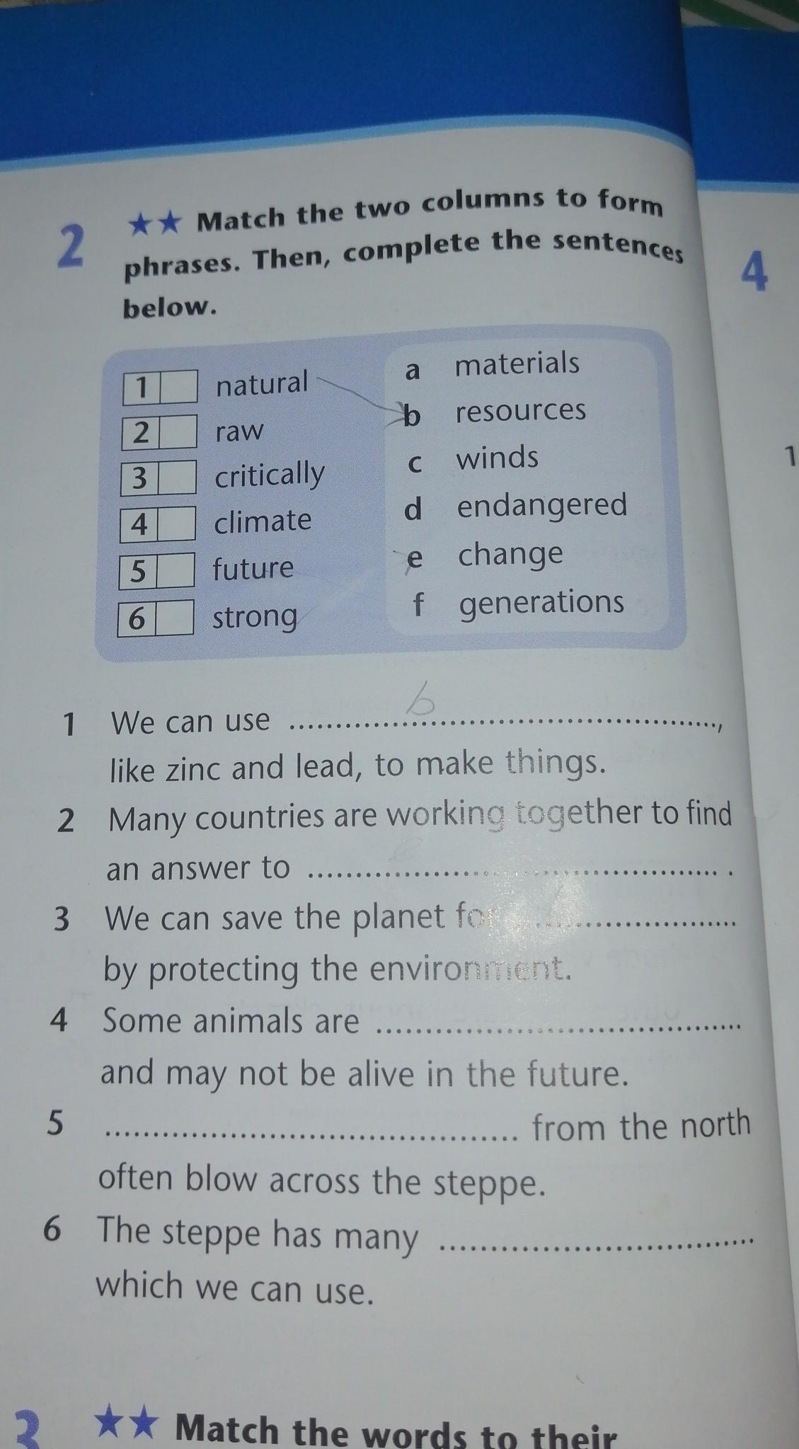 2 Match the two columns to form phrases. Then, complete the sentences below.
