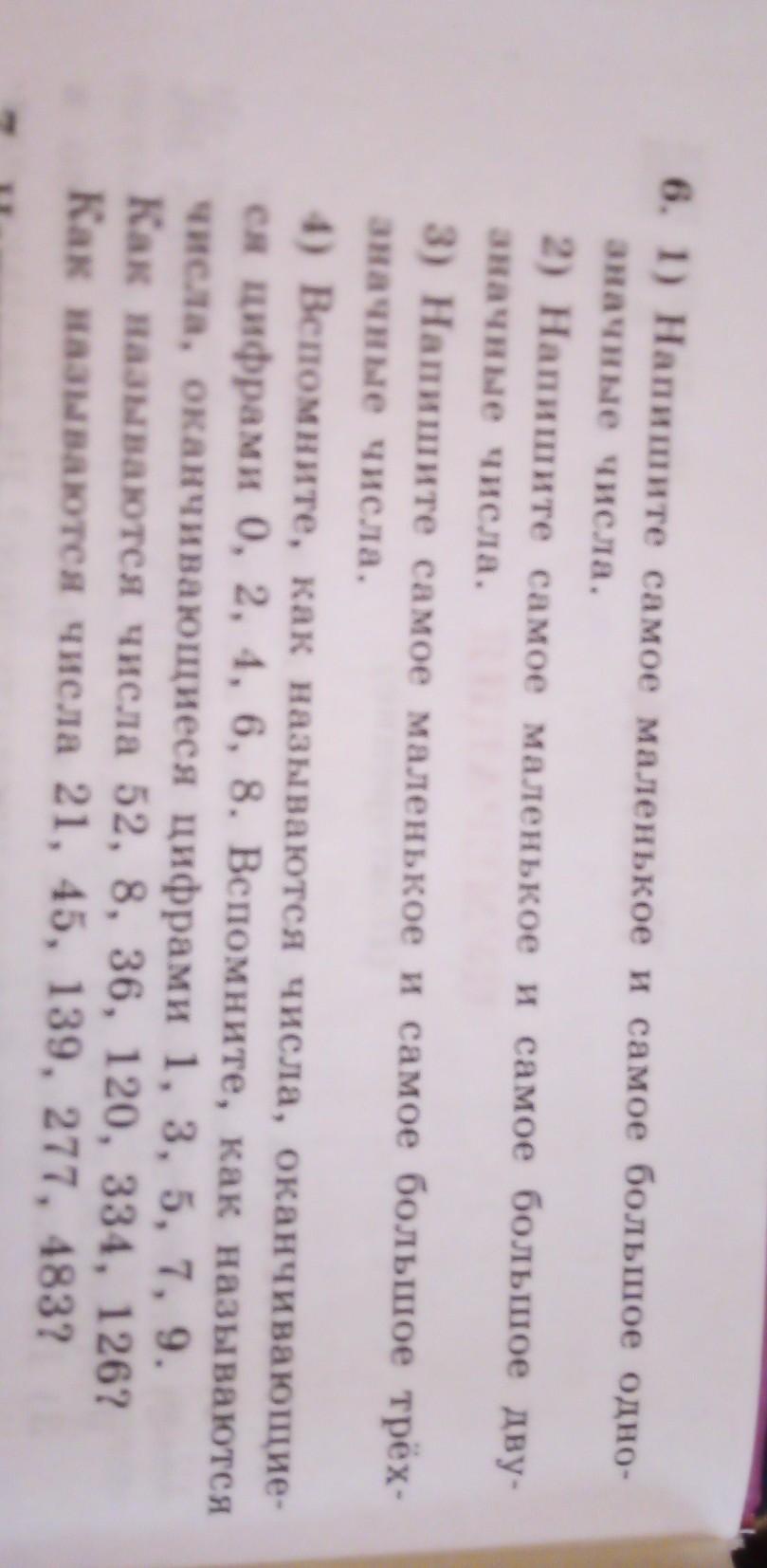 6. 1) Напишите самое маленькое и самое большое однозначные числа.