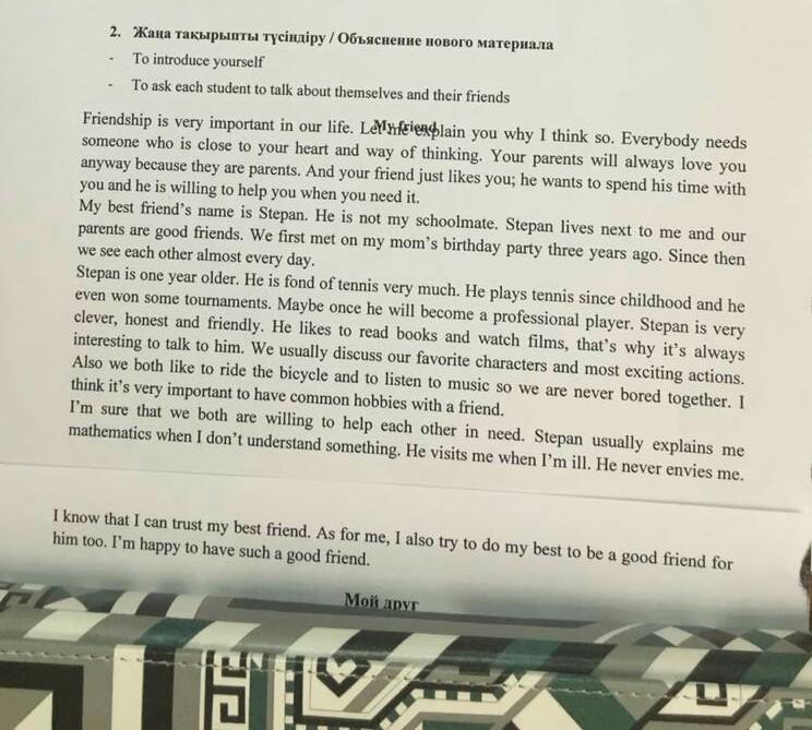 Я уверен что каждый из нас отозветься помочь если это нужно будет. Стефан обычно объясняет мне математику когда я что-то не понимаю. Он навещает меня когда я болею. Он никогда мне не завидует. Я знаю что я могу довериться моему лучшему другу. Как по мне, то я тоже делаю все возможное чтобы быть ему хорошим другом. Я счастлив иметь такого хорошего друга.