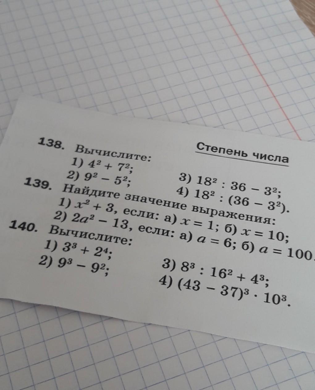 Извините. допустила ошибку. №139, 1) а) при х=1: х² + 3 = 1²+3 = 4 - ответ=4. Еще раз, извините.