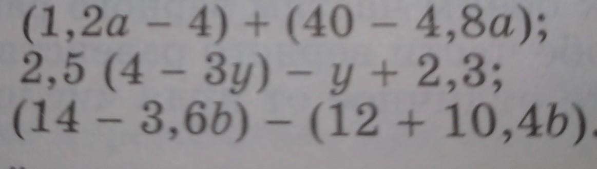 (1,2a - 4) + (40 - 4,8a) = 1,2a - 4 + 40 - 4,8a = 36 - 3,6a