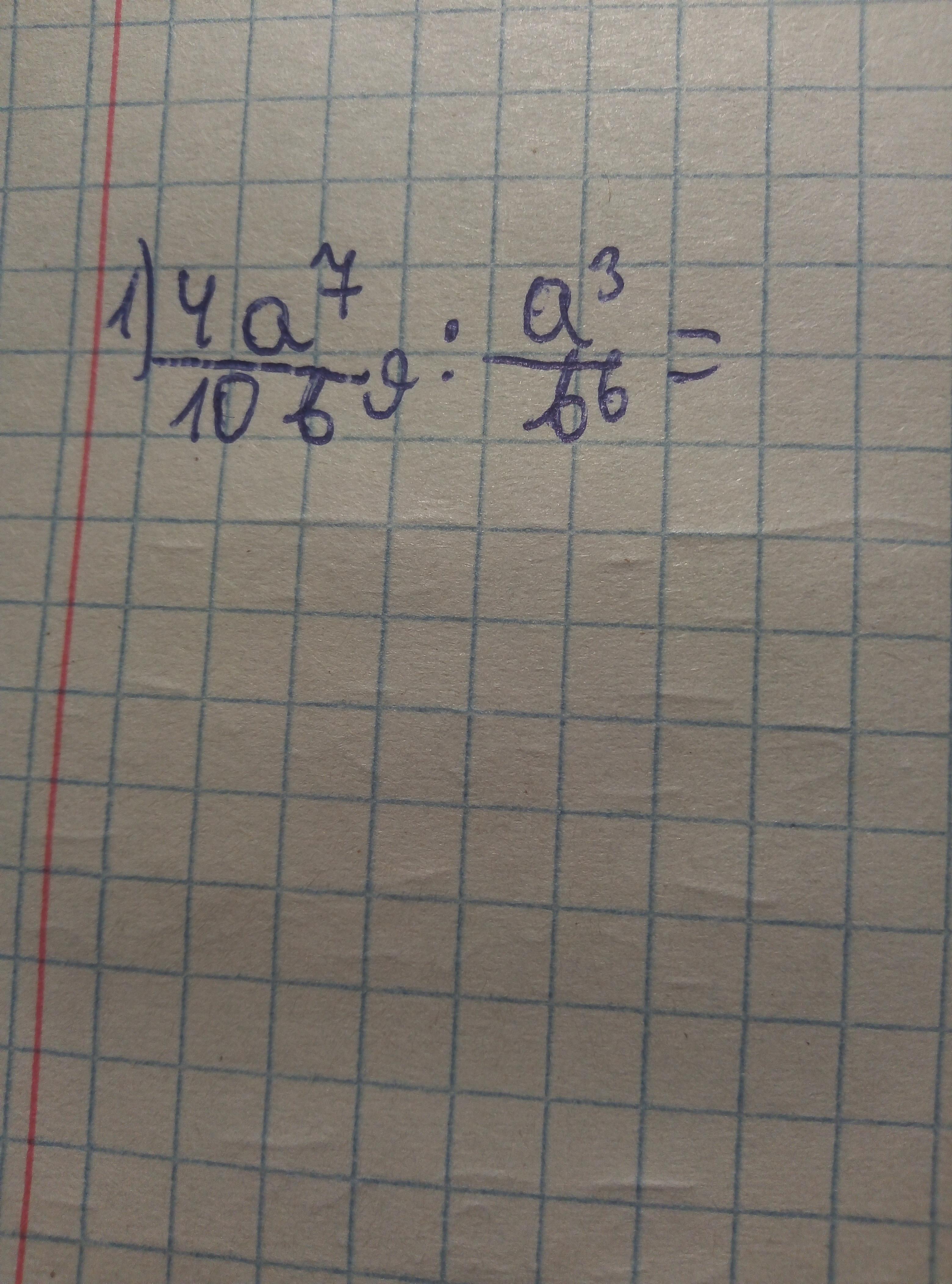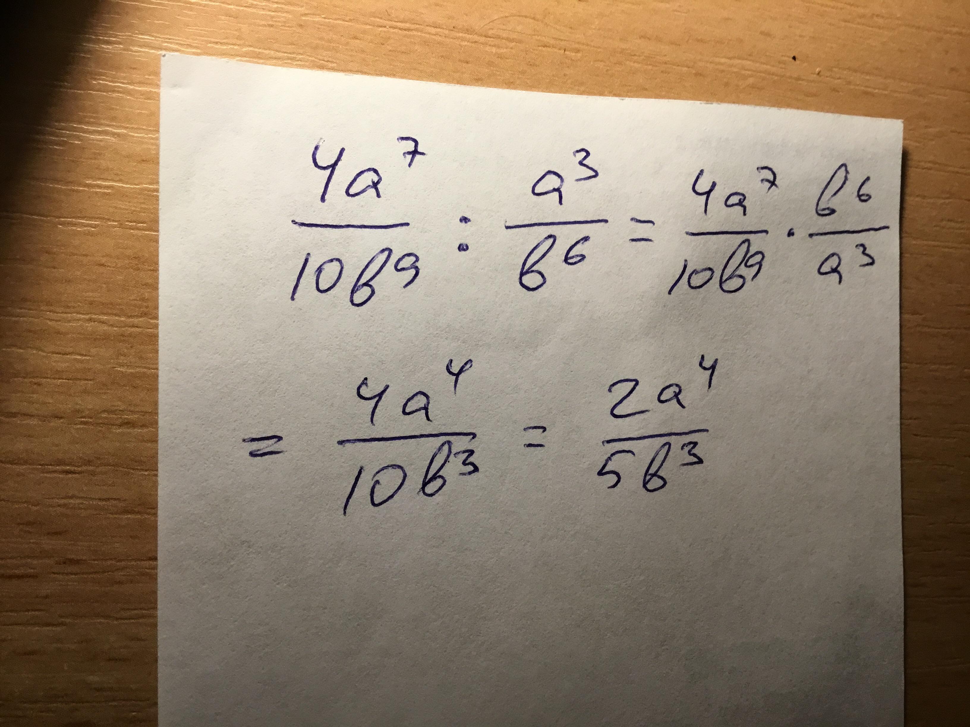 Как это решить?дробь с числителем 4a в степени 7 а знаминатель и 10b в степени 9 поделить на дробь с числителем a в степени 3 и знаминателем b в степени 6