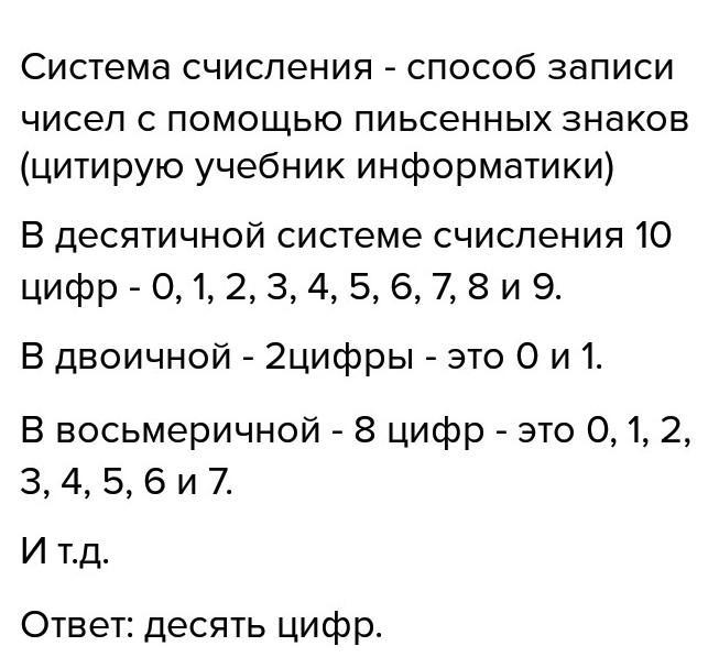 1)Какое наибольше количество различных цифр понадобится, чтобы записать любое натуральное число в десятичной системе счисления?