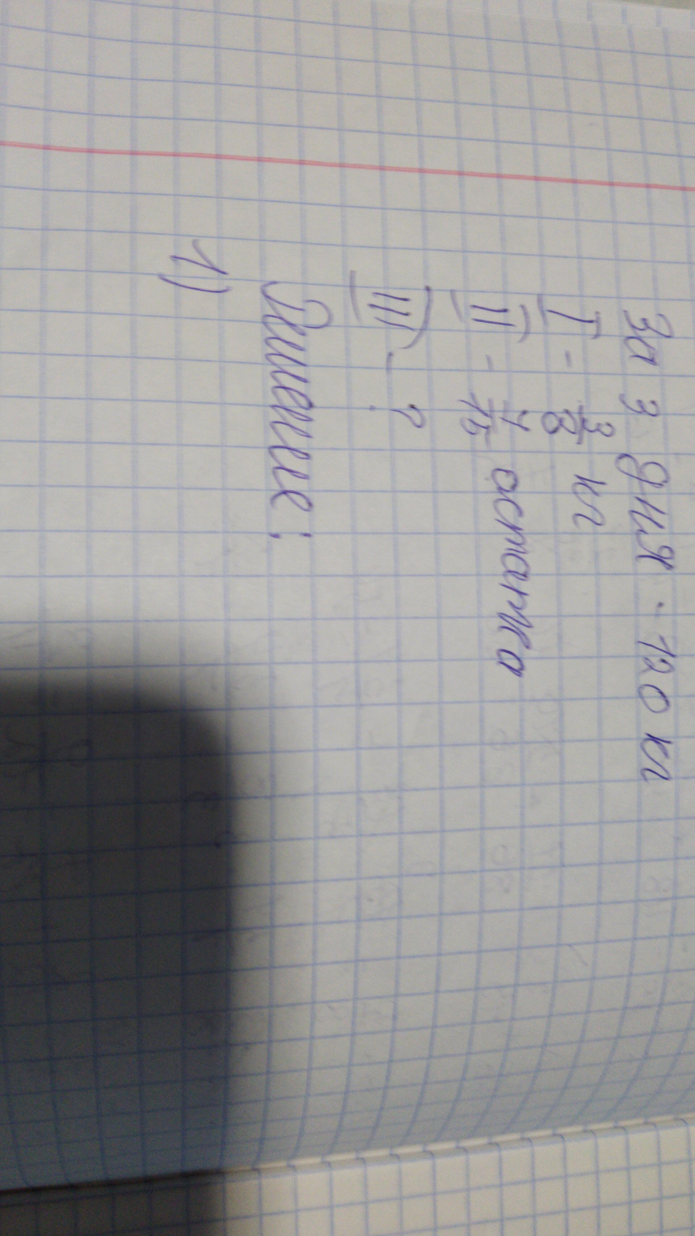 2) Находим остаток, т.к. во второй день 7/15 от остатка: 120 - 45 = 75 кг