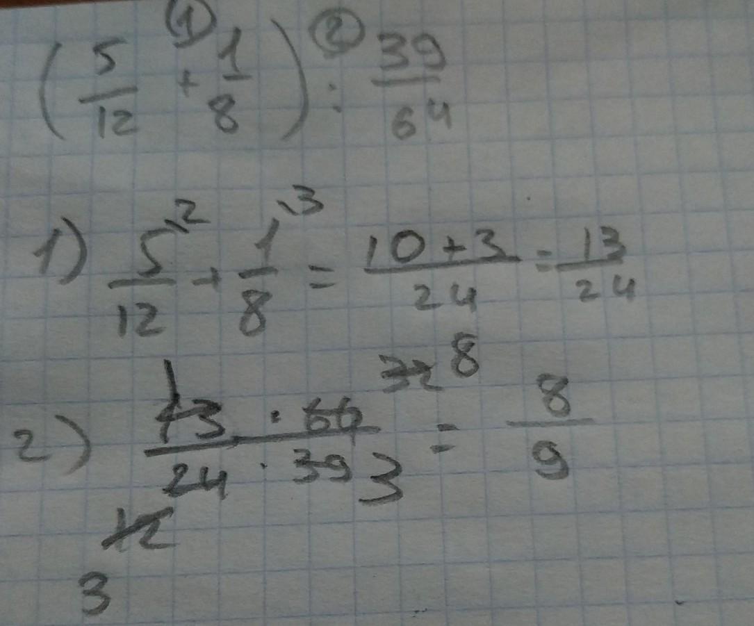 (13/24) / (39/64) = (13/24)*(64/39) сократить 13