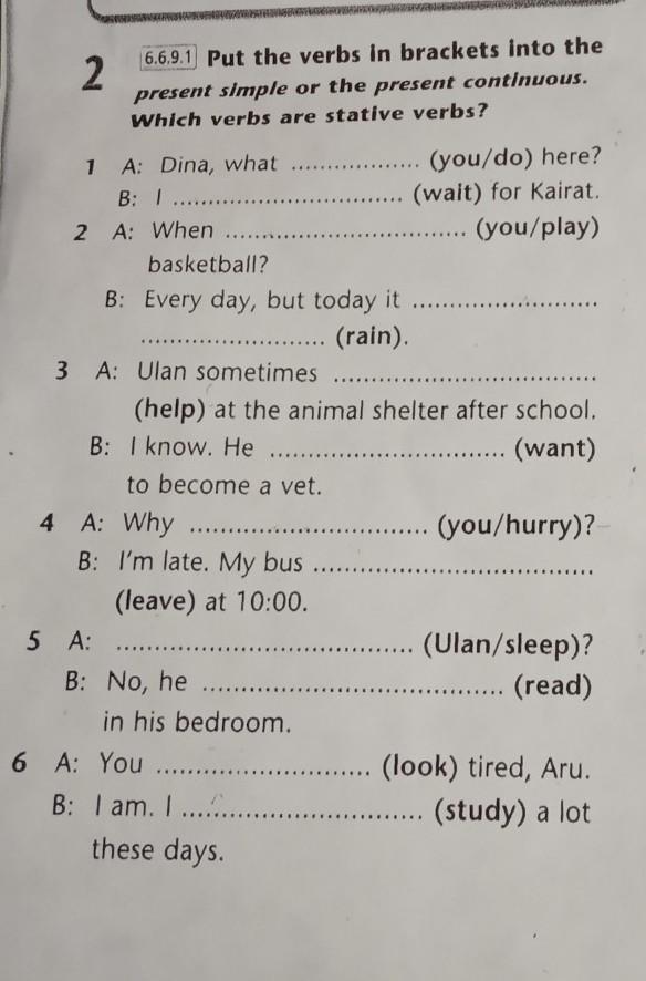 3) A: Ulan sometimes helps at the animal shelter after school.