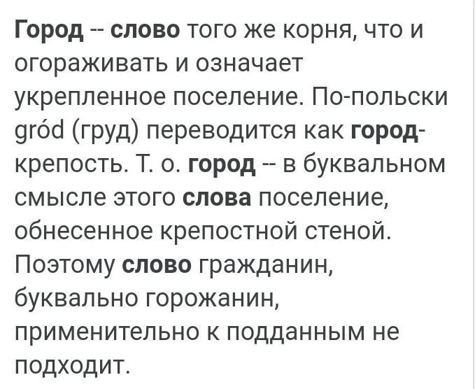 Город -- слово того же корня, что и огораживать и означает укрепленное поселение. По-польски gród (груд) переводится как город-крепость. Т. о. город -- в буквальном смысле этого слова поселение, обнесенное крепостной стеной. Поэтому слово гражданин, буквально горожанин, применительно к подданным не подходит.