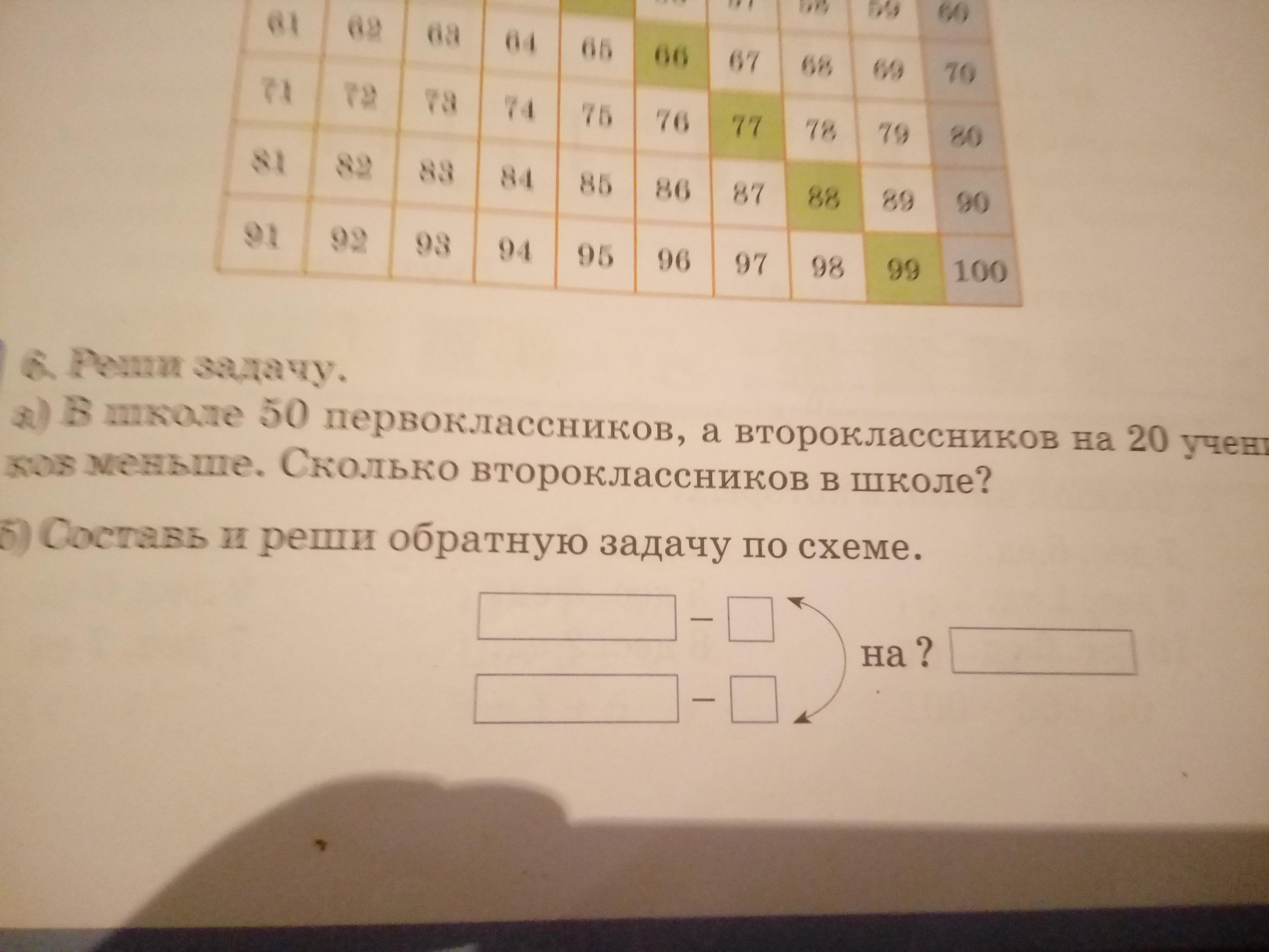 Обратная задача:В школе 50 первоклассников и 30 второклассников.На сколько меньше первоклассников чем второклассников?