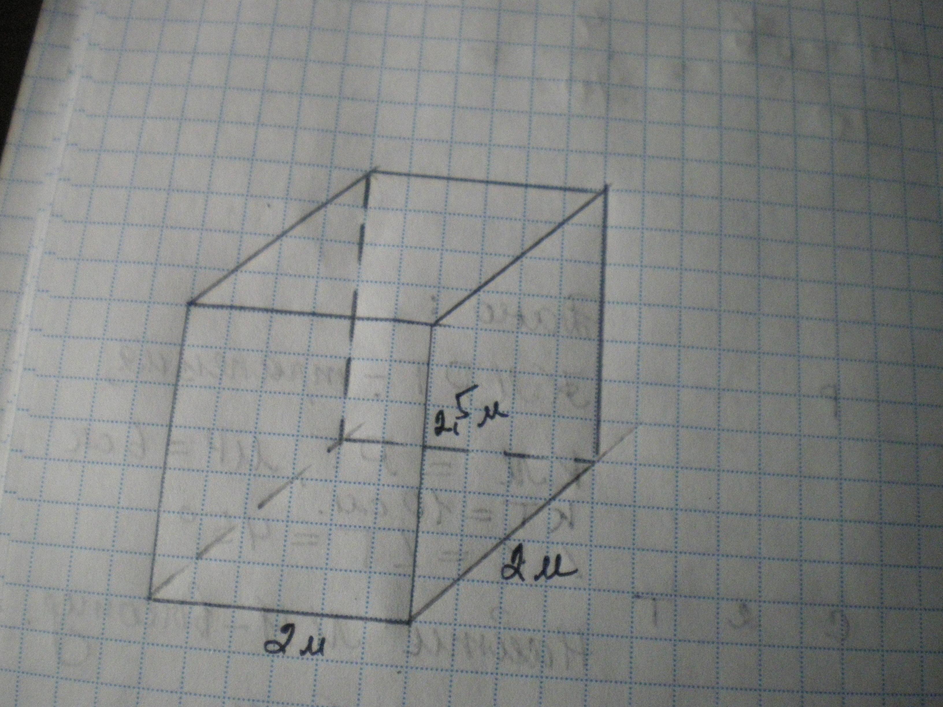 Знайдить площу поверхни й об'эм прямокутного параллелепипеда, сторони основи якого доривнюють 2м, 2м. а висота - 2,5м