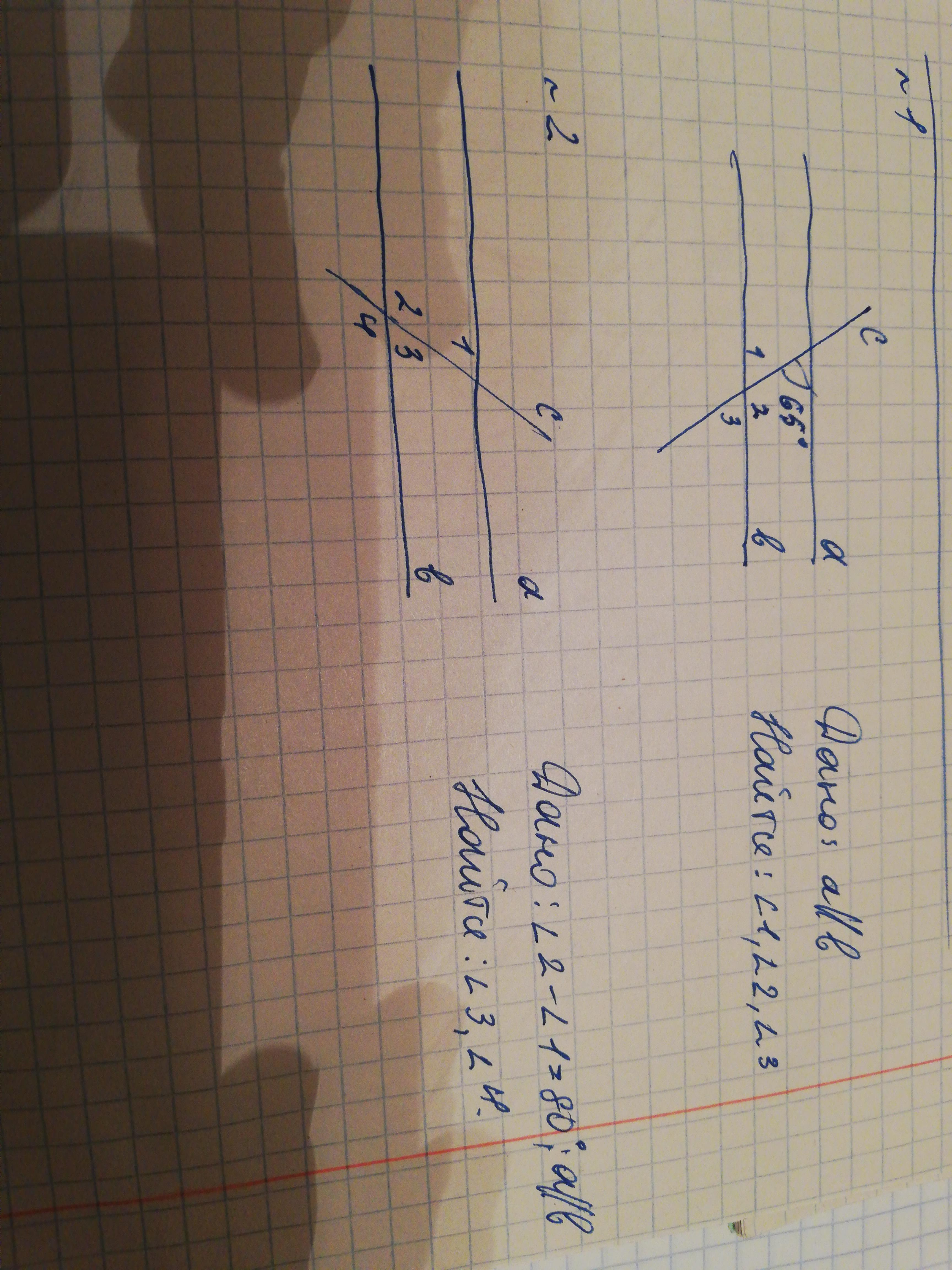 1 номер. Угол 2=65(односторонние), угол 1= 180-65=115, угол 1=углу 3=115