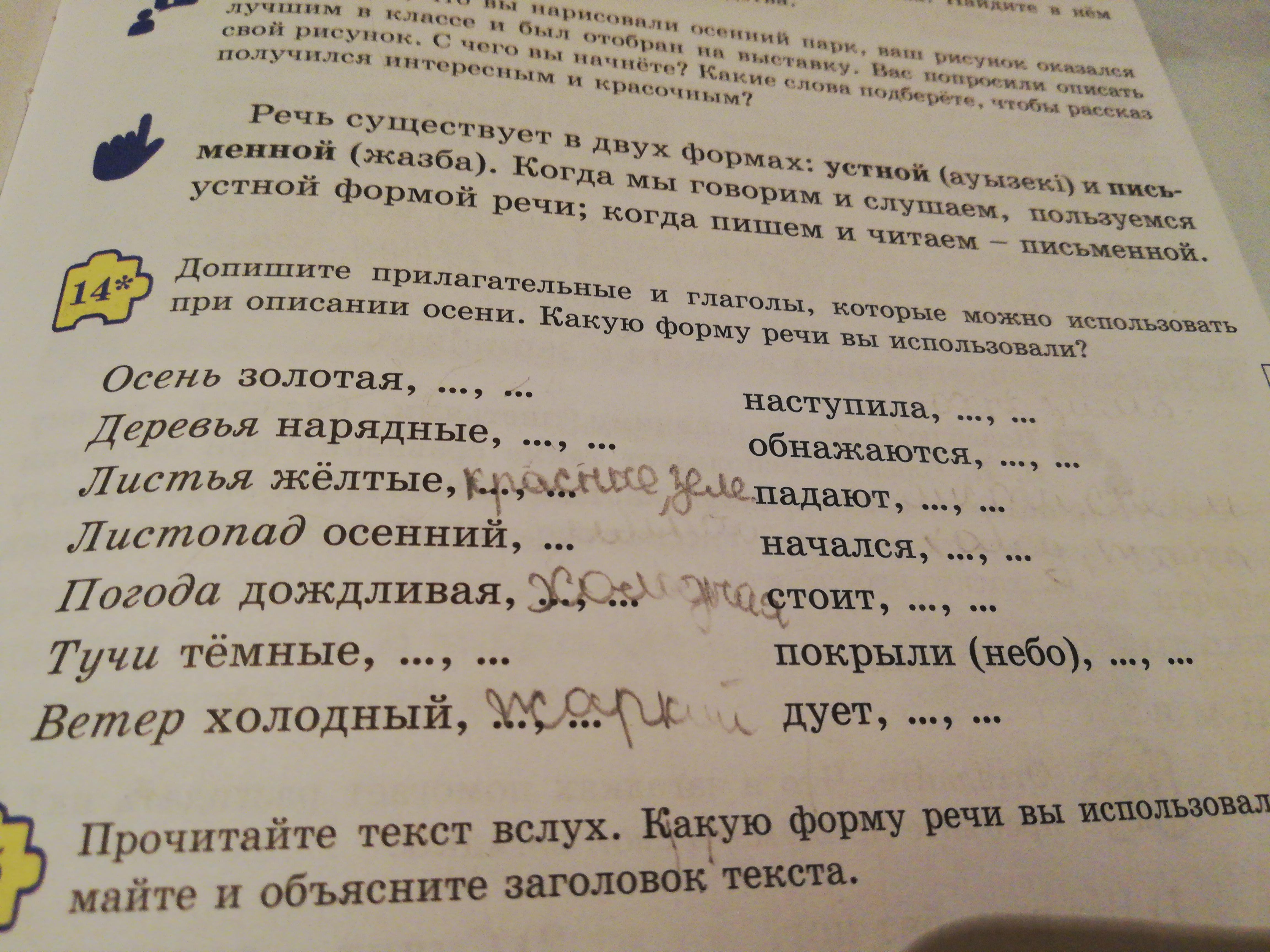Допишите прилагательные и глаголы, которые можно использовать при описании осени