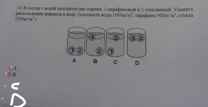 тела с меньшей плотностью поднимаются на верх а с большей опускаются вниз, как показано на рисунке B