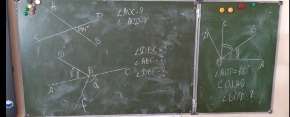 1)AOC=DOB;AOD=180-DOB 2) DBC= 180-ABD;ABF=180-FBC;DBF=ABD+(180-FBC) 3)BOD= 120-45=75
