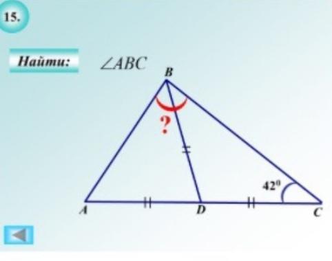 2) т.к. сумма углов ∆ = 180°, то <BDC = 180° - 42° - 42° = 96°