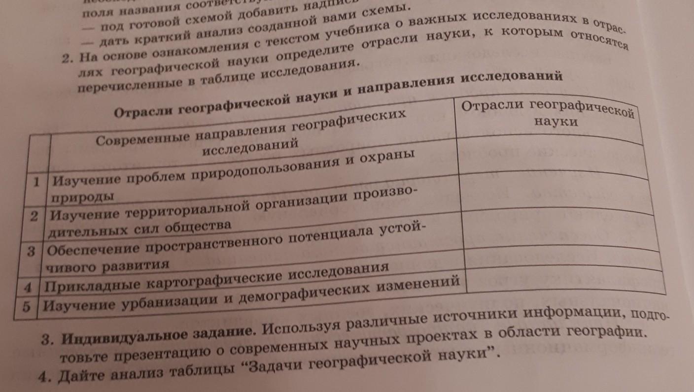 на основе ознакомления с текстом учебника о важных исследованиях в отраслях географической науки Определите отрасли науки, которым относятся перечисленные в таблице исследования