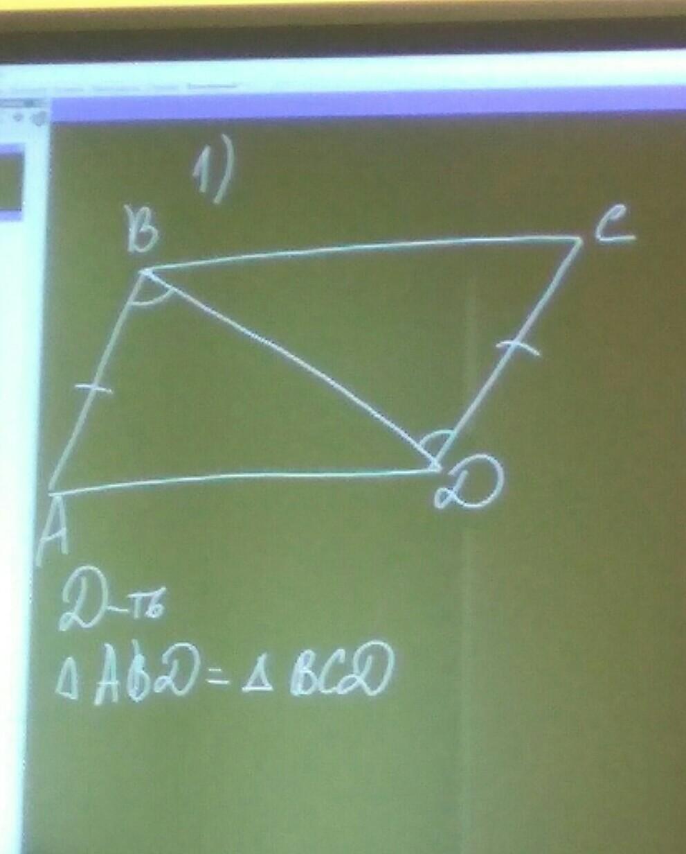 4) ΔABD=ΔBCD по первому признаку равенства треугольников (двум сторонам и углу между ними)
