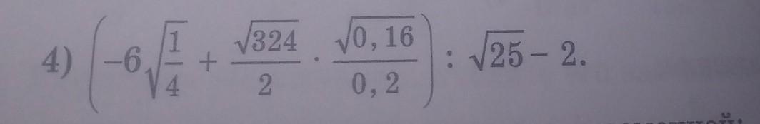1) корень(324) /2 * корень(0,16)/0,2 = 18/2* 0,4/0,2 =18/2* 2 =18