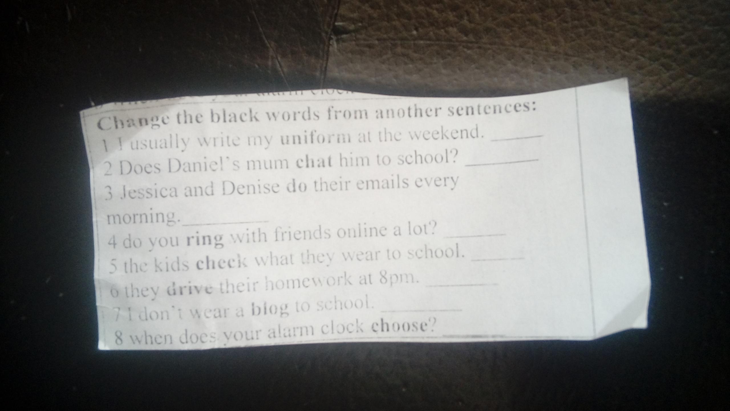 1)blog 2)drive 3) check 4)chat 5)choose 6)do 7)uniform 8)ring