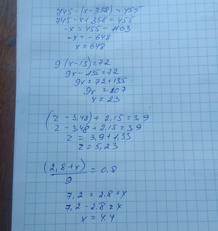 1) х-358=745-455
