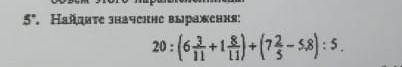 20 ÷ (6 3/11 + 1 8/11 ) + (7 2/5 - 5.8) ÷ 5 = 2 41/50