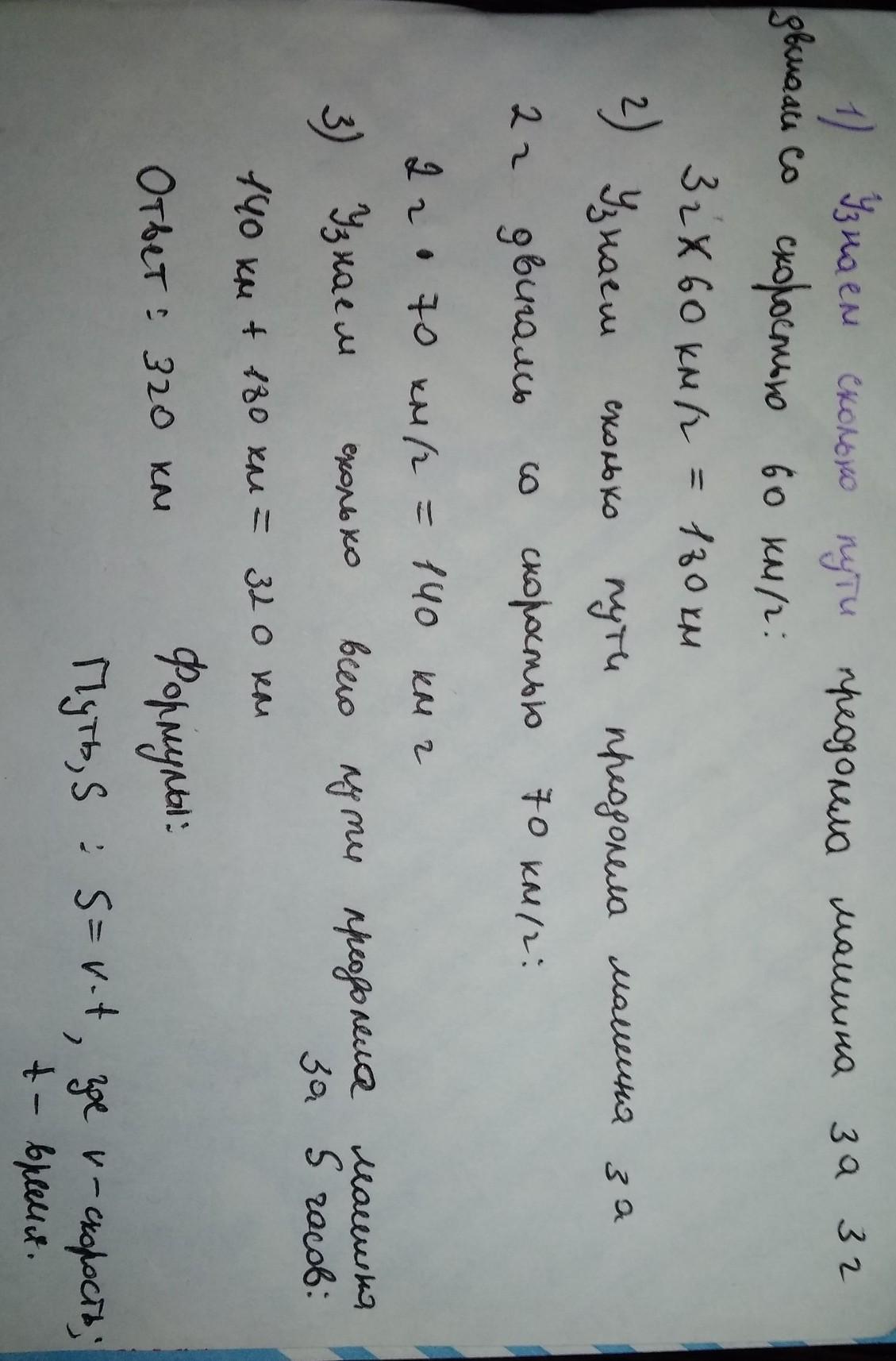 Машина двигалась 3 ч со скоростью 60 км/ч и 2 ч со скоростью 70 км/ч. Какой путь прошла машина за 5 часов?