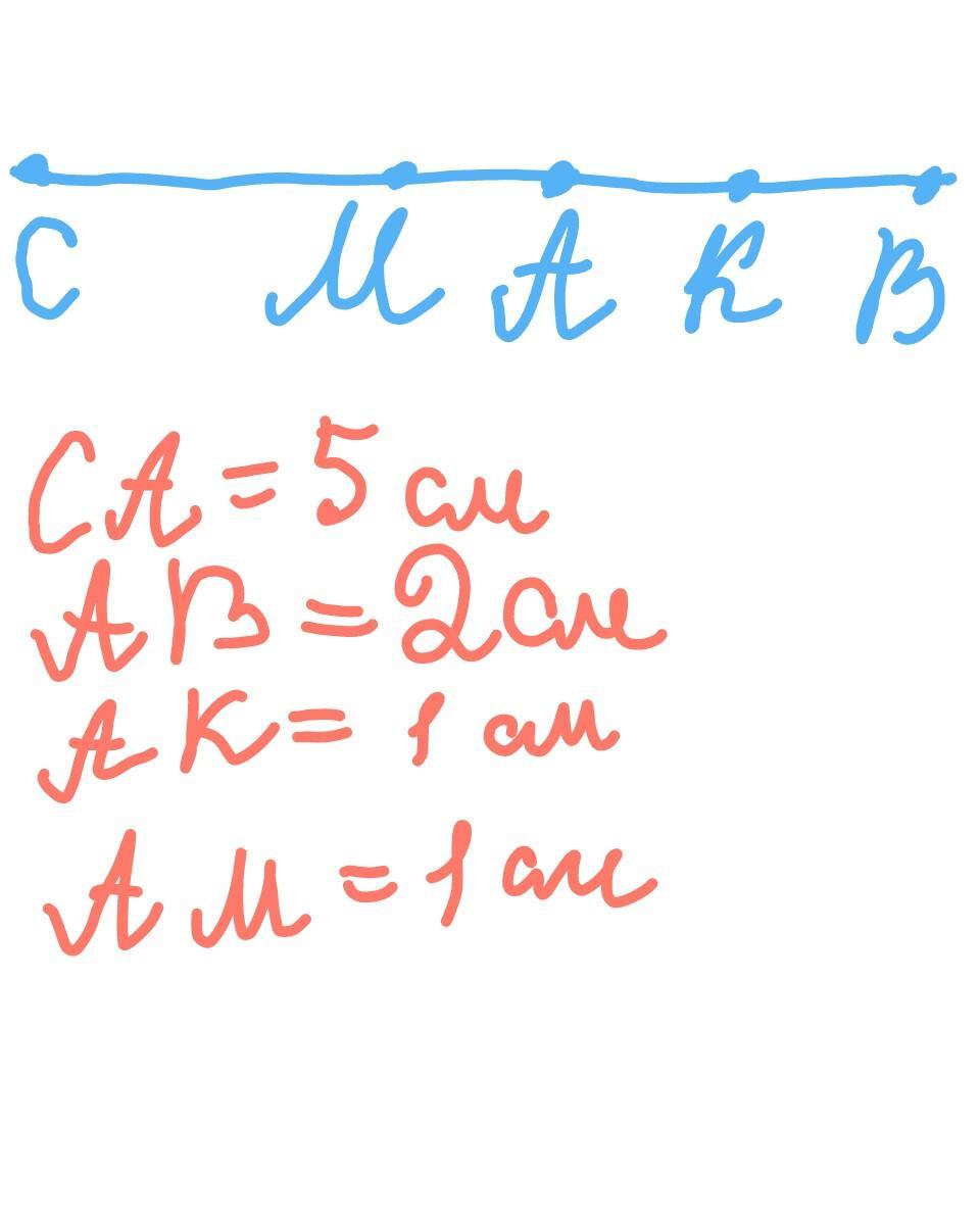 помогите решить задачу: Отметьте точки А и В на расстоянии 2 см друг от друга. Проведите через эти точки прямую и отложите на ней отрезок А С длинной в 5 см так, чтобы точки ВиС были по разные стороны от точки А. Есть ли на прямой точка, находящаяся от точки А на расстоянии 1 см?