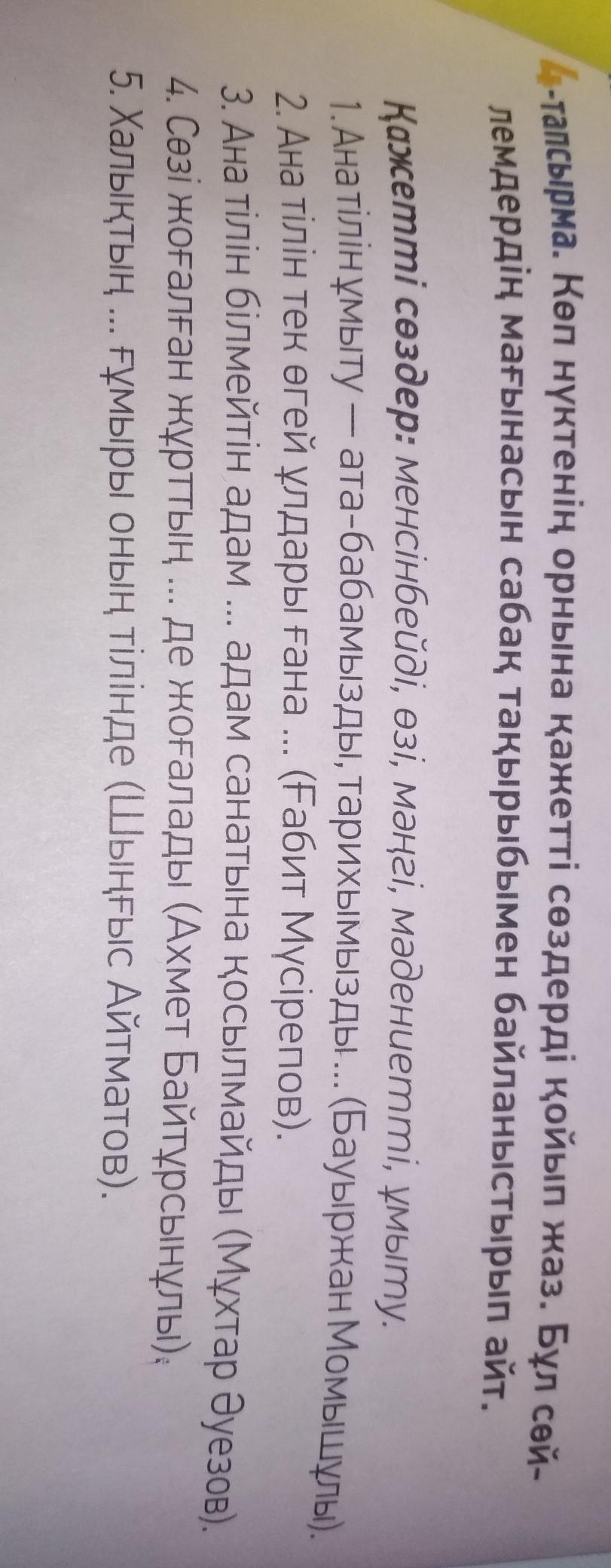 1)умыту 2)менсинбейди 3)Манги 4)ози 5)мадинети