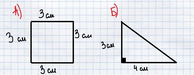 Б) построй прямоугольный треугольник со сторонами 3 см и 4 см, образующий прямой угол