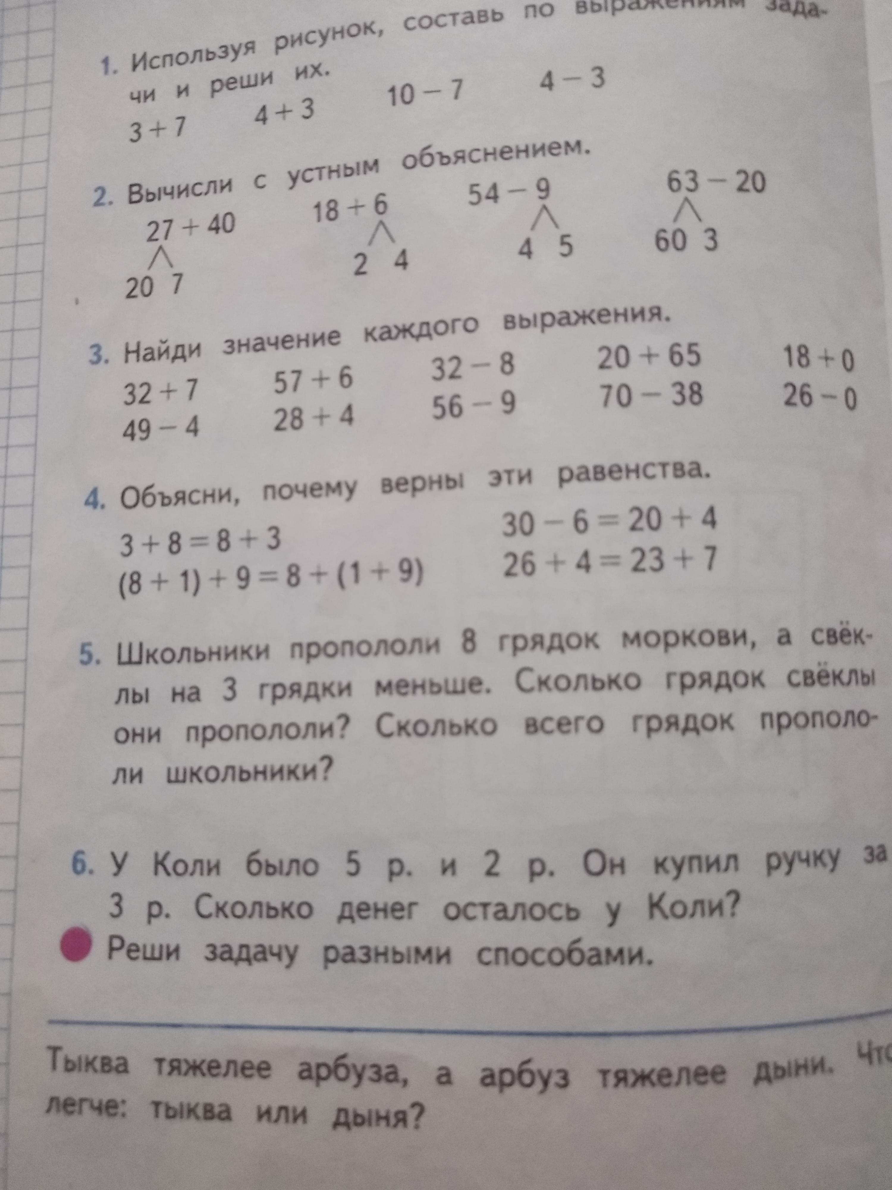 1) 8 — 3 = 5 грядок свёклы пропололи школьники.