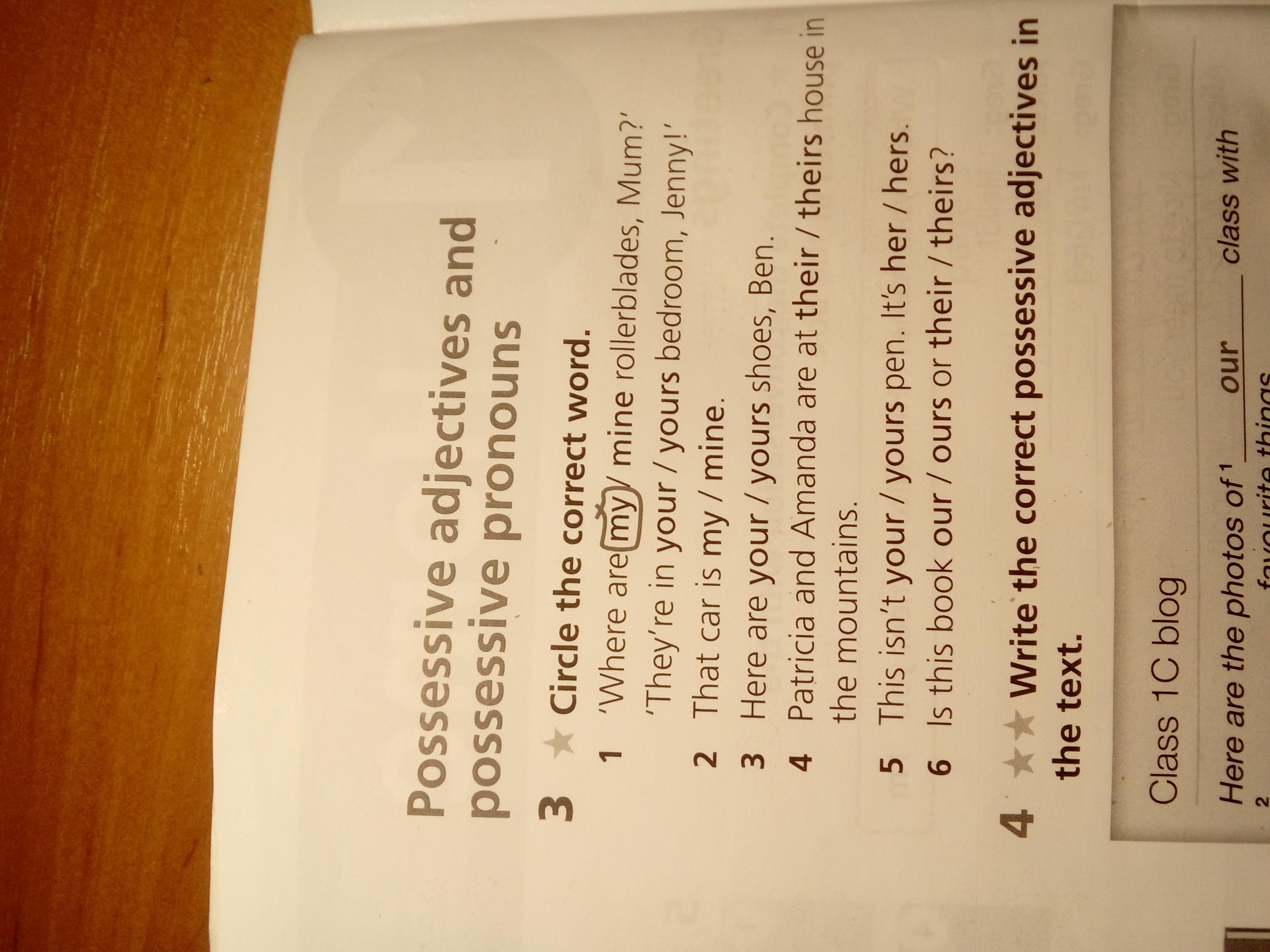 1-your 2-mine 3-your 4-their 5-your 6-ours or theirs