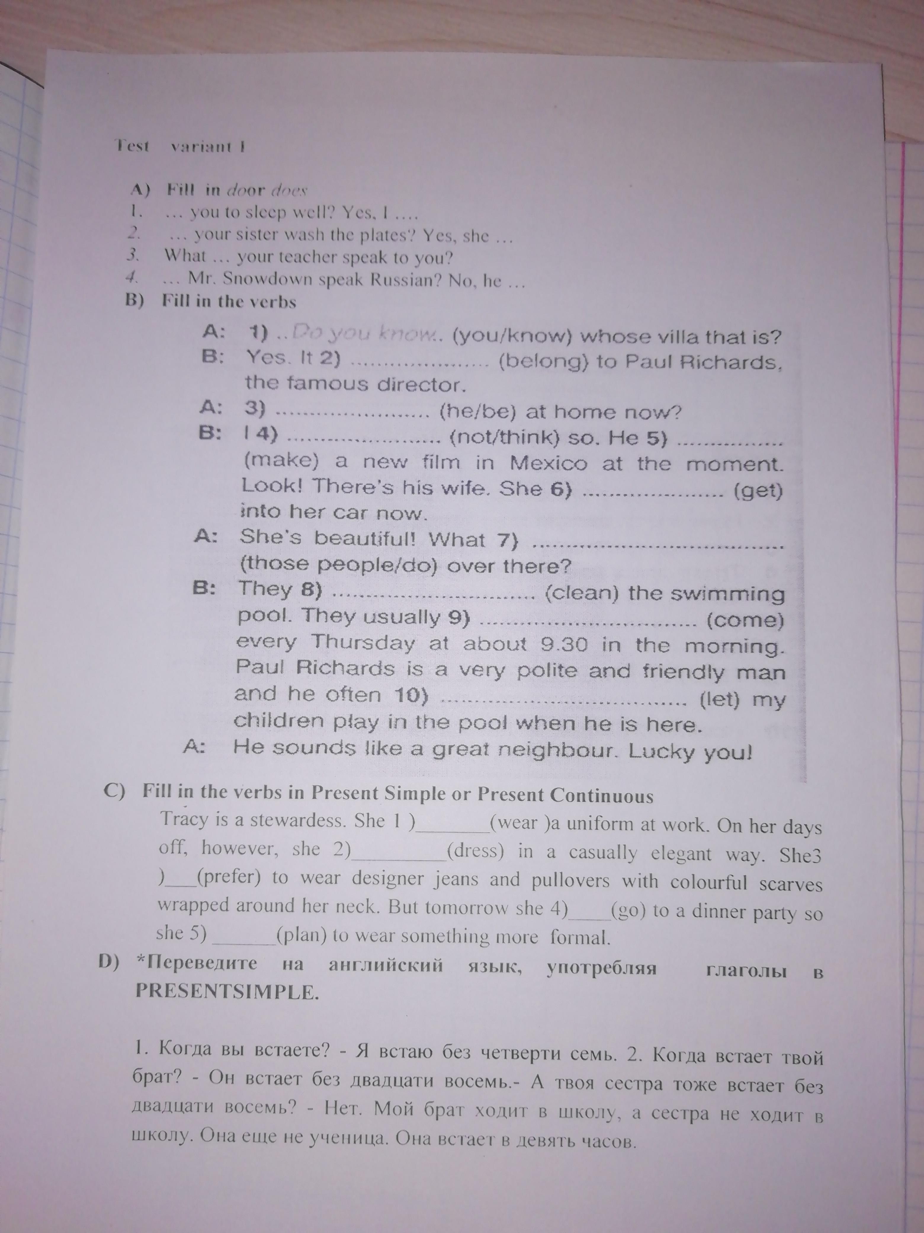2)Belongs,3)Is he 4)don't think 5)is making 6)get 7)those people doing 8)are cleaning 9)coming 10)letting