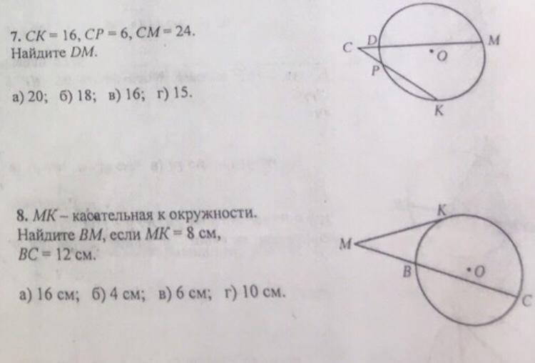 8)Если из точки, лежащей вне окружности, проведены касательная и секущая, то квадрат длины касательной равен произведению секущей на ее внешнюю часть: