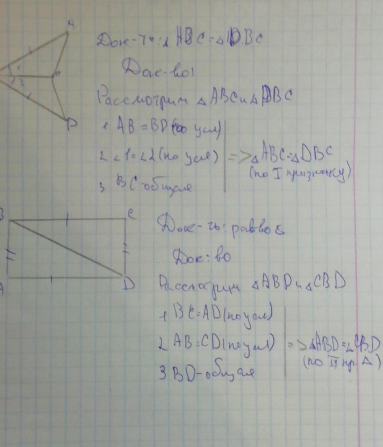 Треугольник АВС=DBCпо 1 признаку рав-ва треугольников