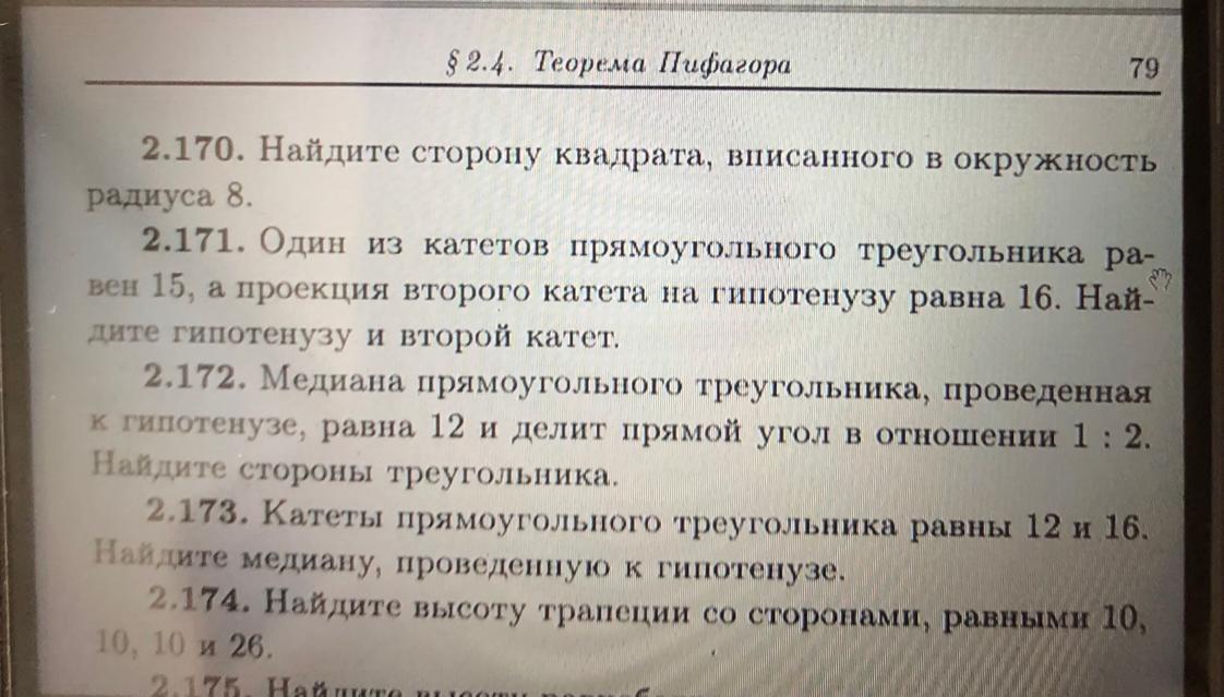 Медиана, проведенная к гипотенузе, равна половине гипотенузы, т.е. гипотенуза равна 24. а т.к. отношение углов, на которые делится прямой угол, 1/2, то один из углов равен 30°, а другой 60°, и значит, один треугольник, отсекаемый медианой, будет равносторонним. т.е. все стороны в нем равны 12, т.е. катет даного в условии треугольника тоже равен 12, тогда третью сторону треугольника найдем из теоремы Пифагора. √(24²-12²)=√((24-12)*(24+12))=6√12=12√3