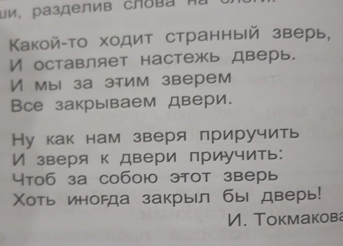 ка-кой-то хо-дит стран-ный зверь и о-став-ля-ет на-стежь дверь и мы за э-тим дверь-ю все за-кры-ва-ем две-ри